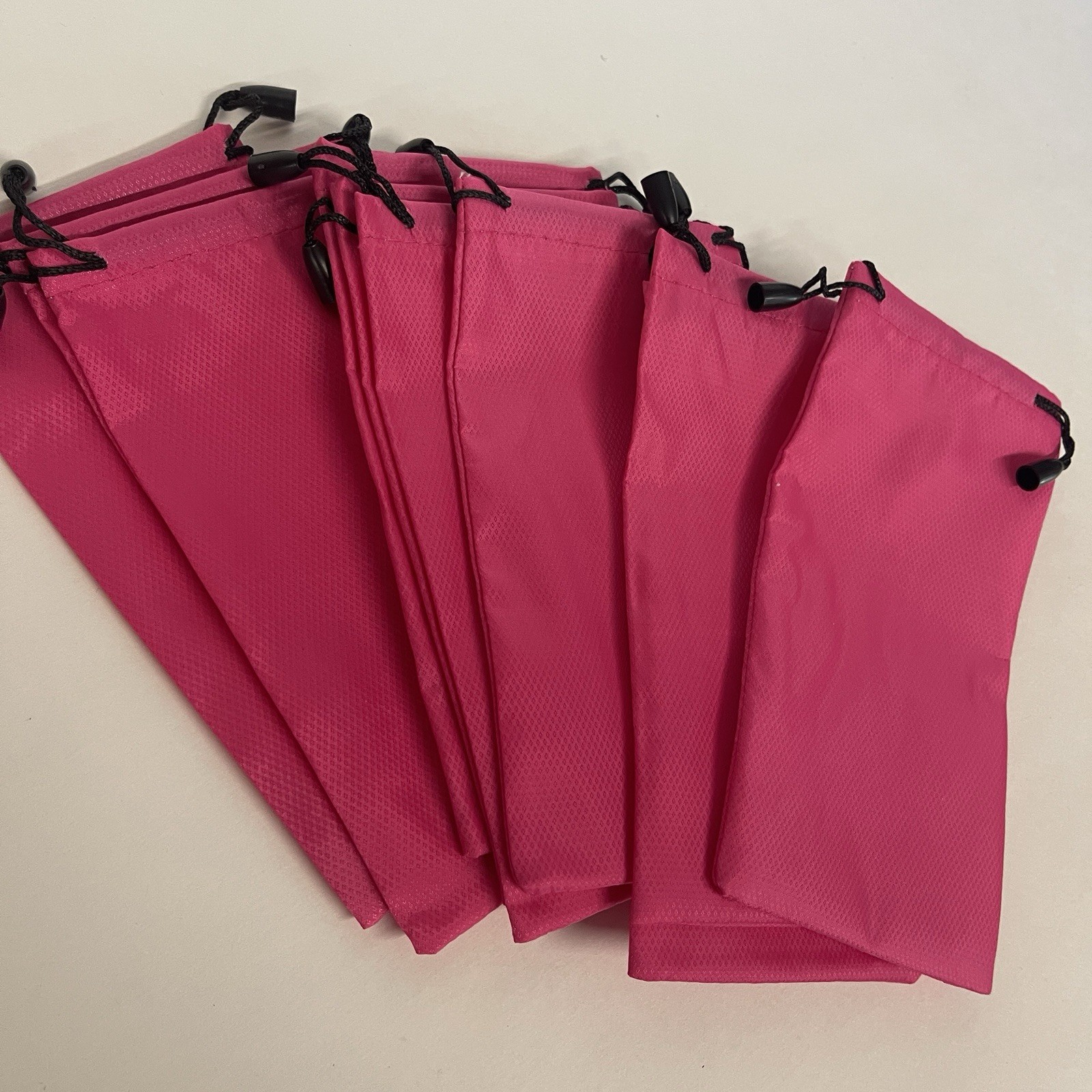 10-Pack Bright PINK Drawstring Sunglasses Pouch Flat Stiff Cloth Storage Bags