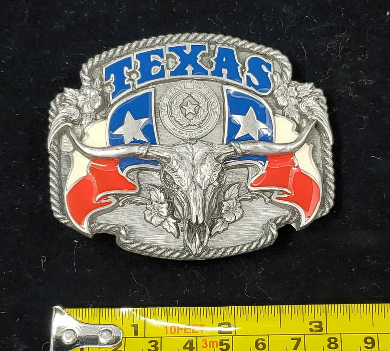 VTG Siskiyou Texas Republic Colorful Flags Longhorn State Seal Belt Buckle 1995