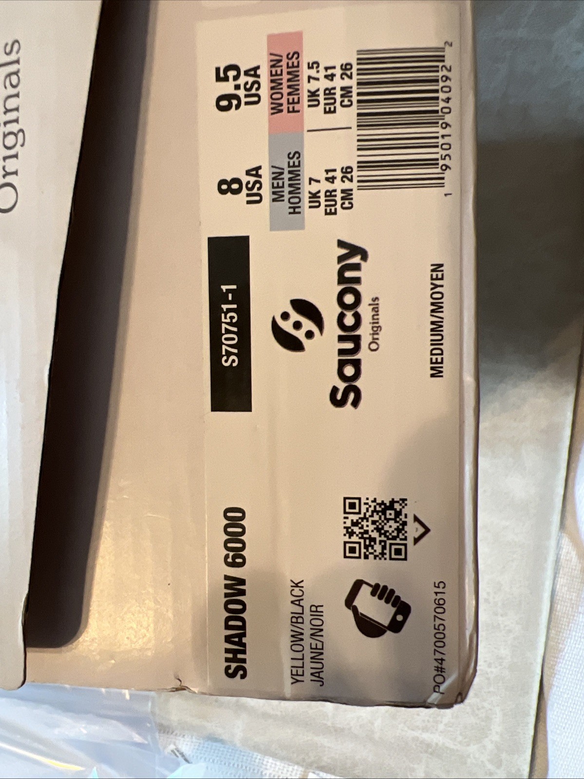 Saucony Shadow 6000 Black/Yellow Sneaker Men s Size 8 Women s 9.5 S70751-1 NEW
