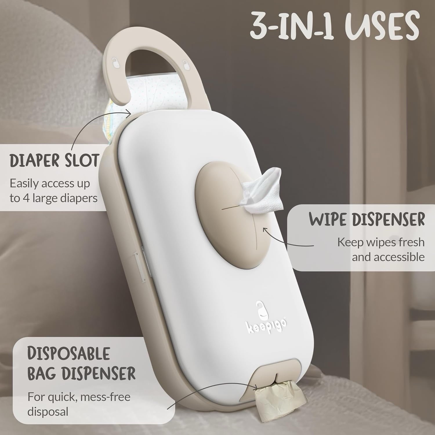 3-in-1 Portable Diaper Caddy Organizer Baby Wipe Holder and72pcsDisposable Bags