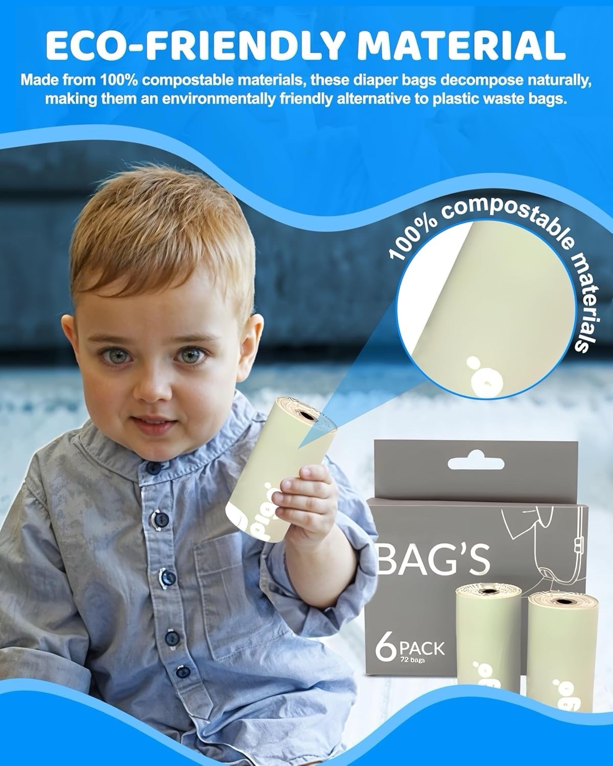 Особенности: Adjustable Strap, Eco Friendly, Numerous Sections, Moisture-locking technology, Hook for strollers, Easy wipe pull feature, Portable design, Leak-proof diaper bags, Odor-free bags