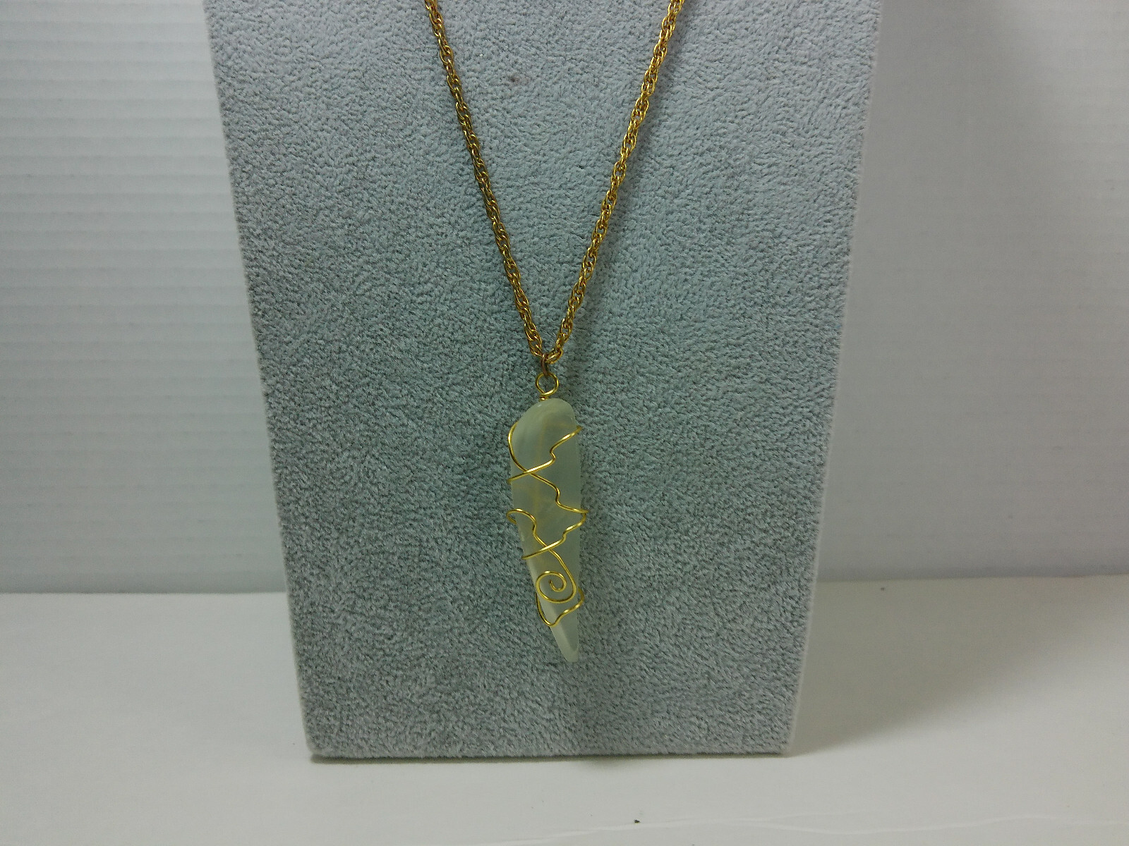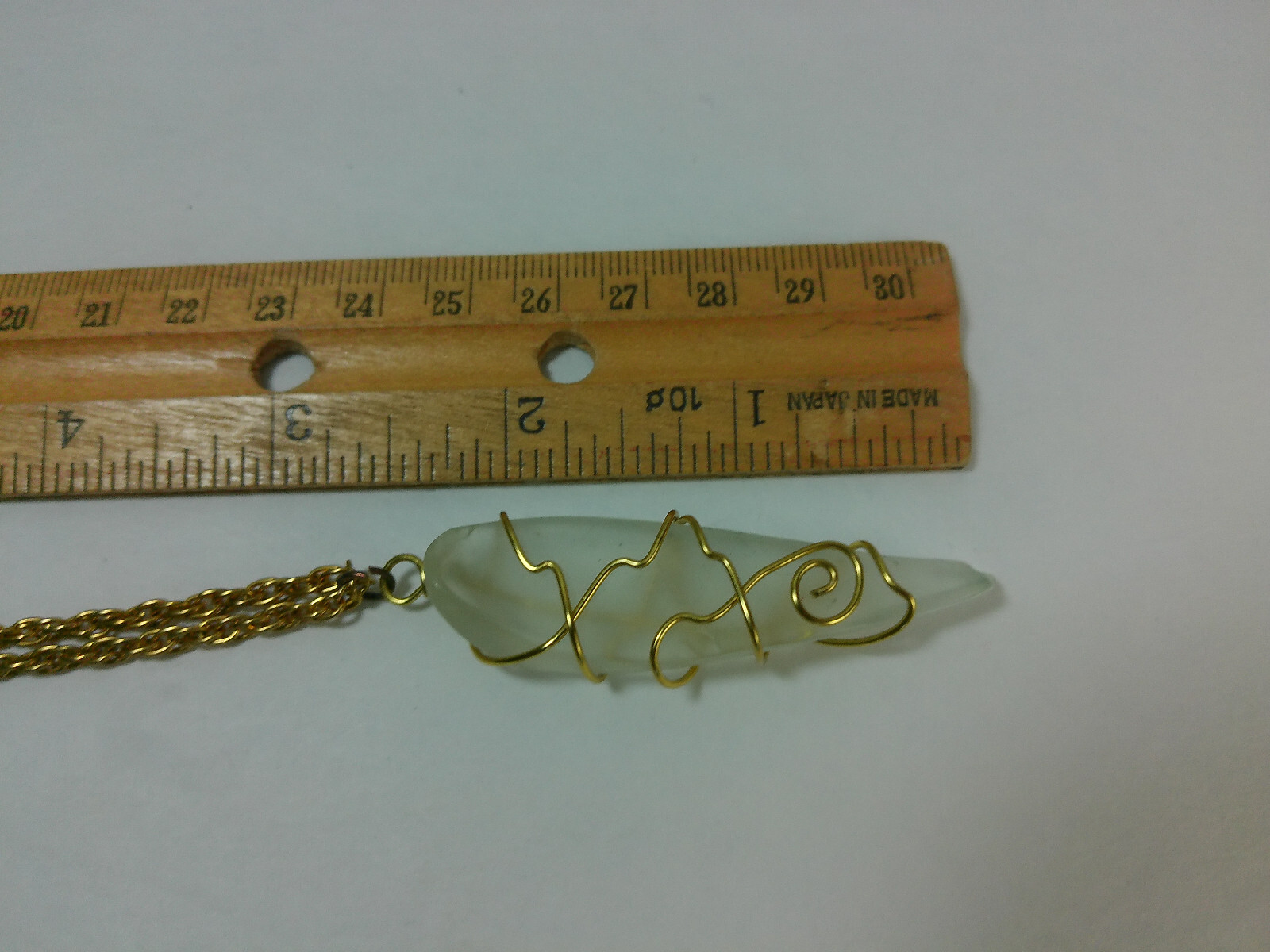 как выглядит Wire Wrapped Sea Ocean Glass Gold Tone Artisan Pendant Chain Boho Beach Necklace фото