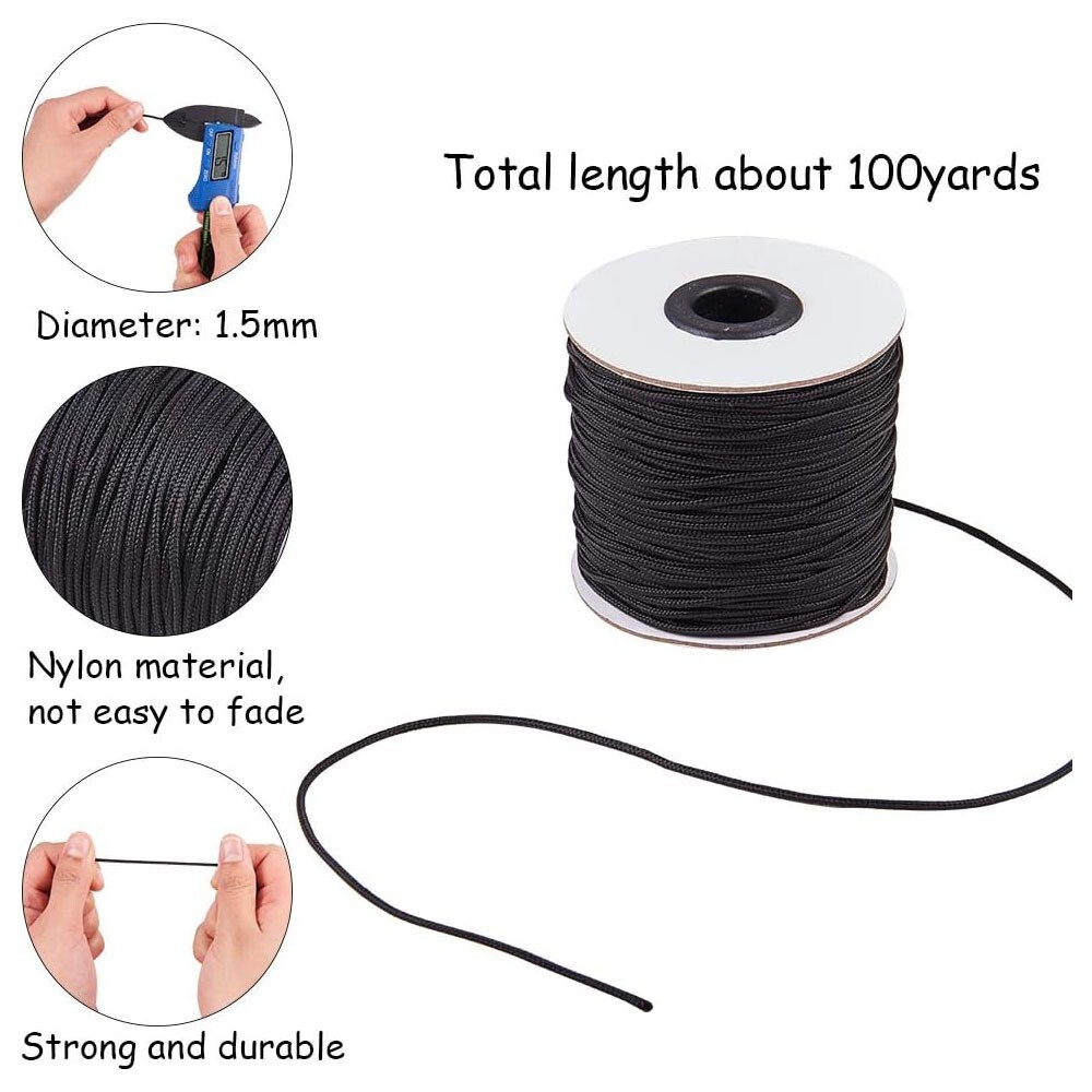 1.5mm 100 Yard Black Nylon Cord Wind Chime Cord Replacement Braided Blind String