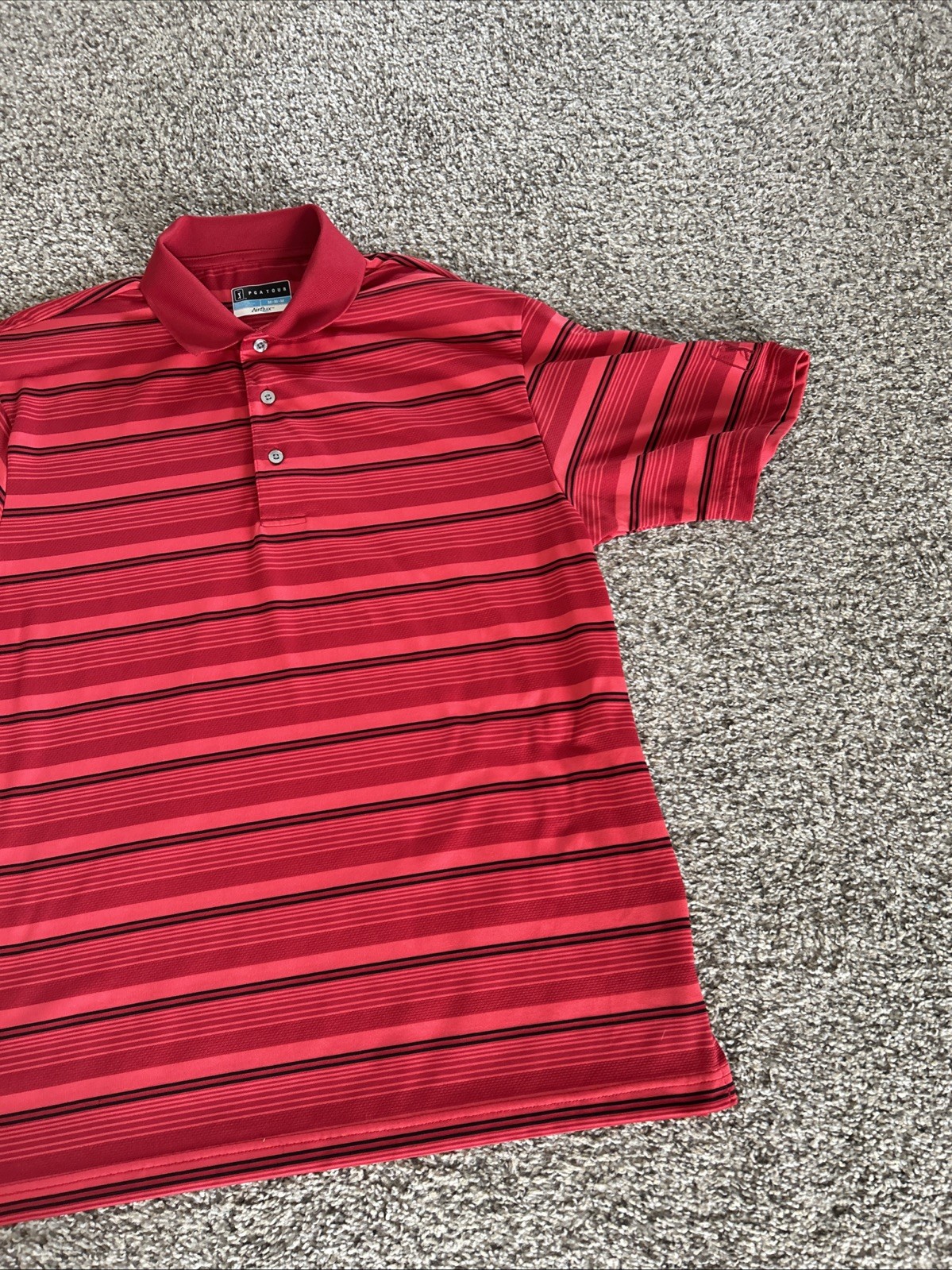 как выглядит PGA Tour Mens Airflux Short Sleeve Solid Golf Polo Shirts Red Striped Medium M фото