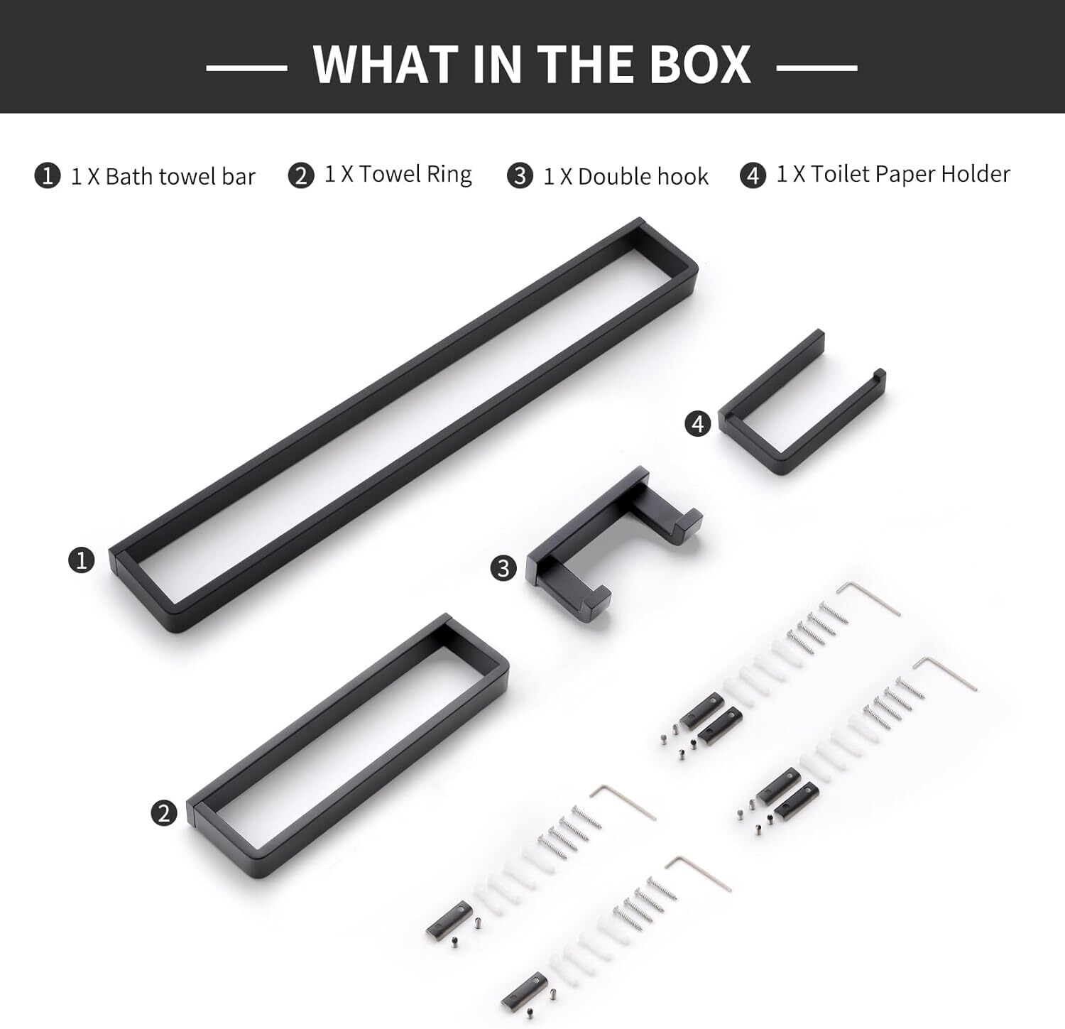 4-Piece Matte Black Bathroom Hardware Accessories Set, Bath Towel Bar Set