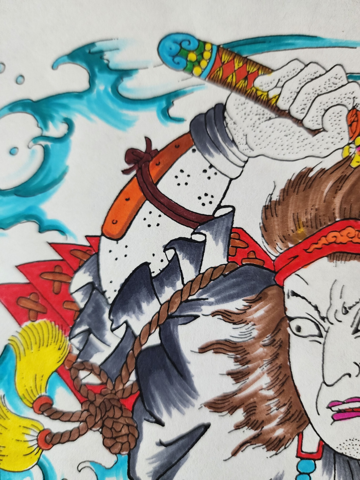 как выглядит VINTAGE OG Traditional Japanese shop Used Tattoo Flash Sheet Dragon, Samurai фото