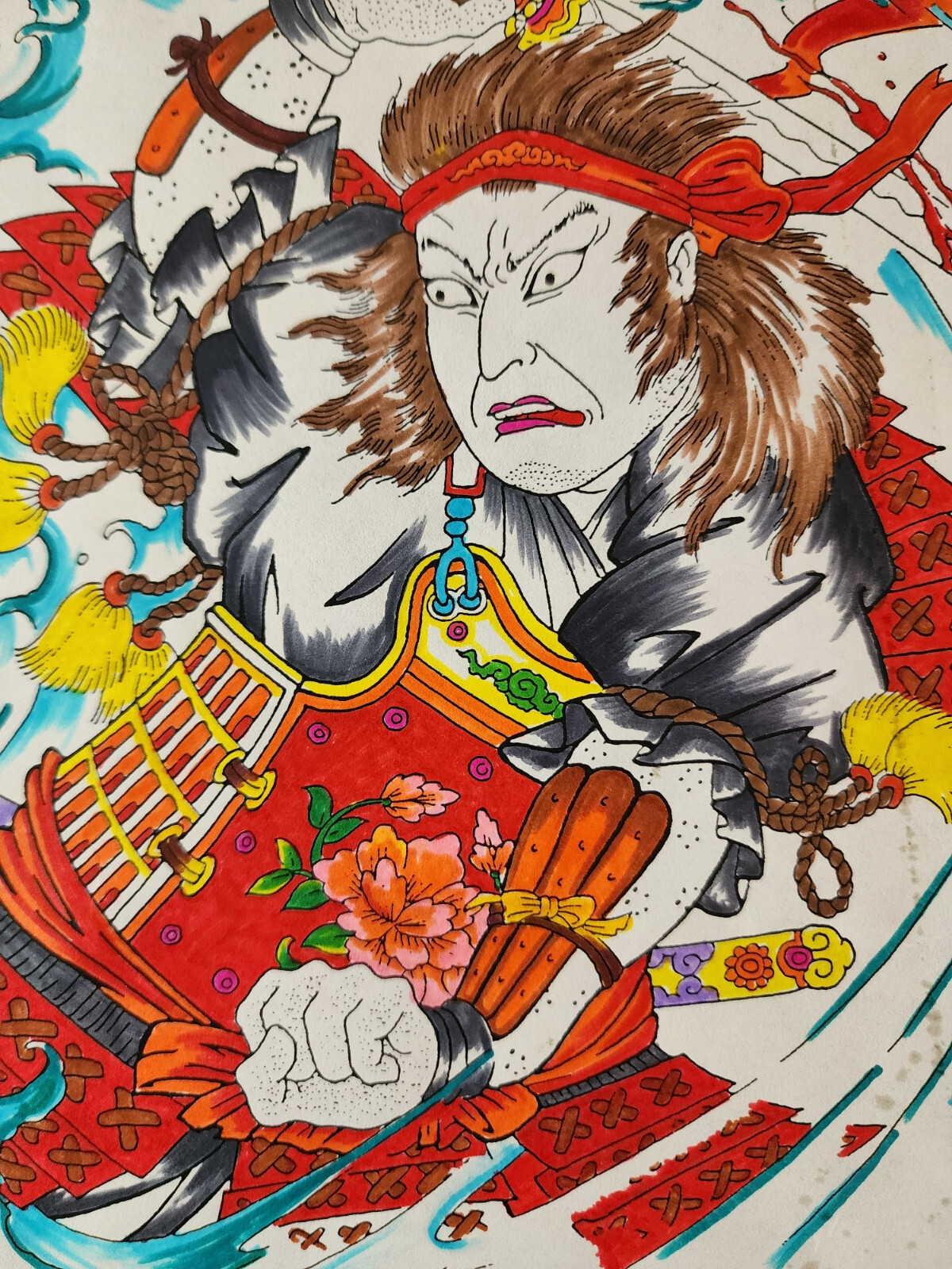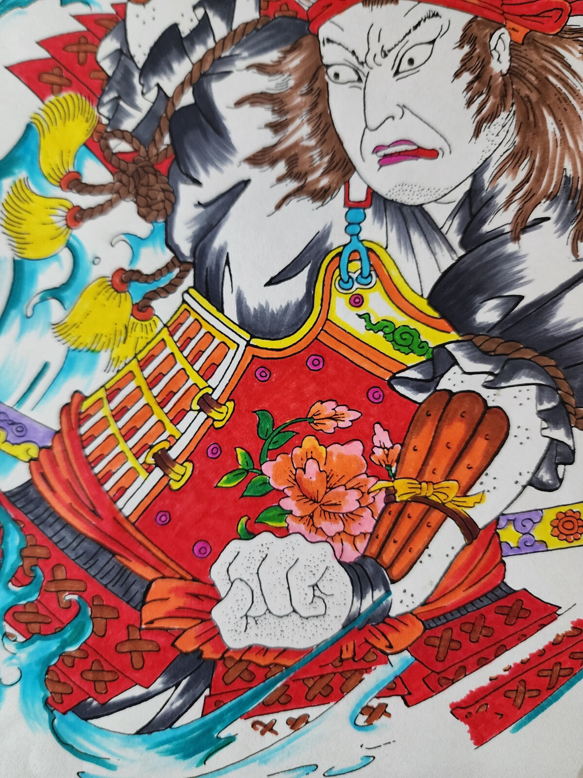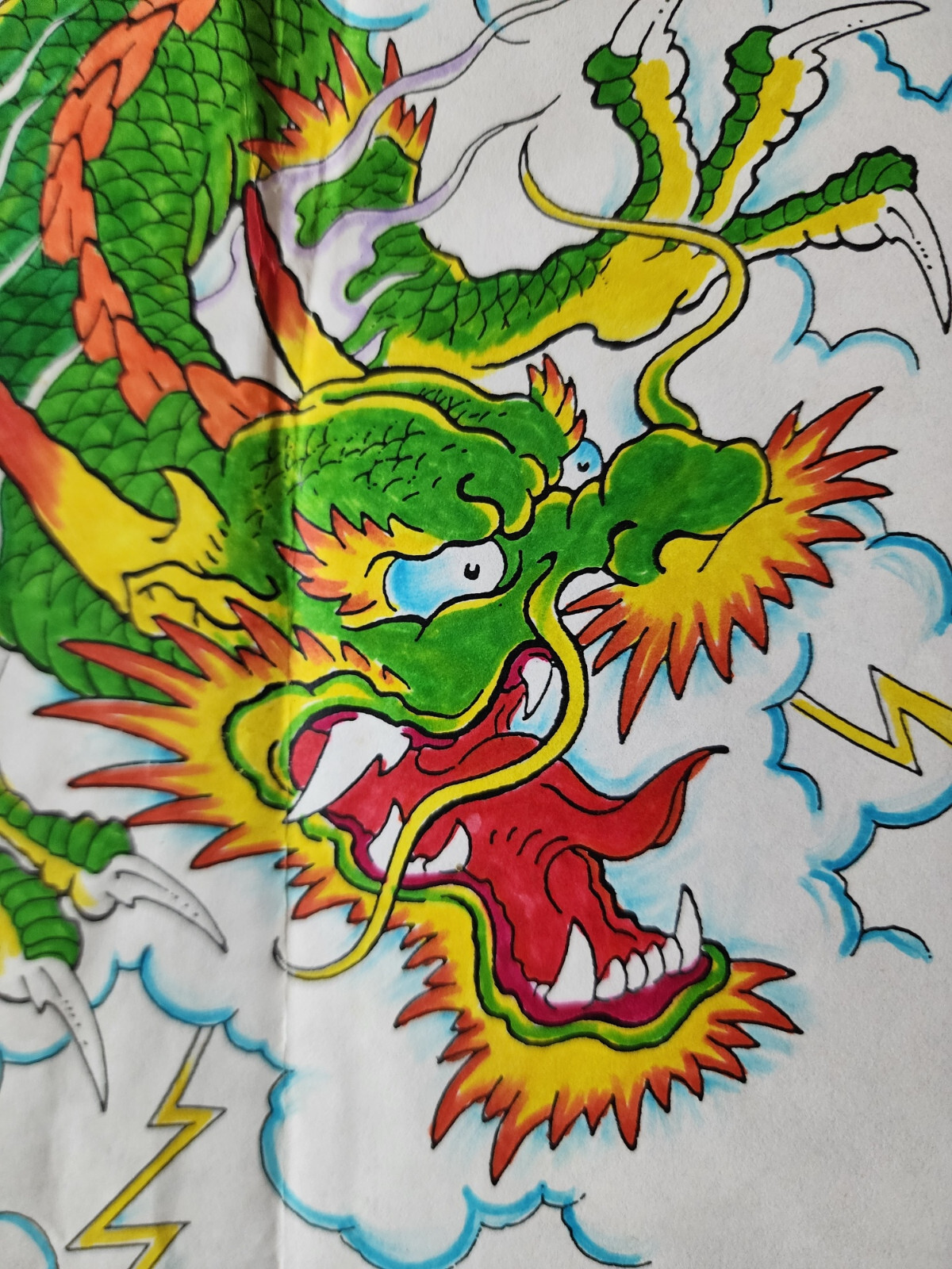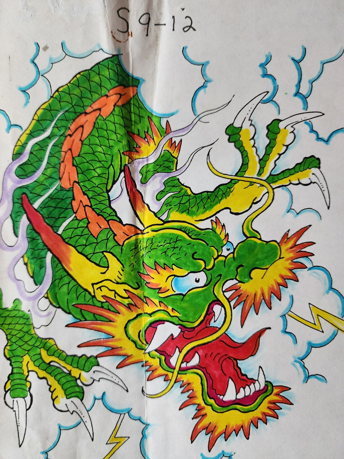 VINTAGE OG Traditional Japanese shop Used Tattoo Flash Sheet Dragon, Samurai