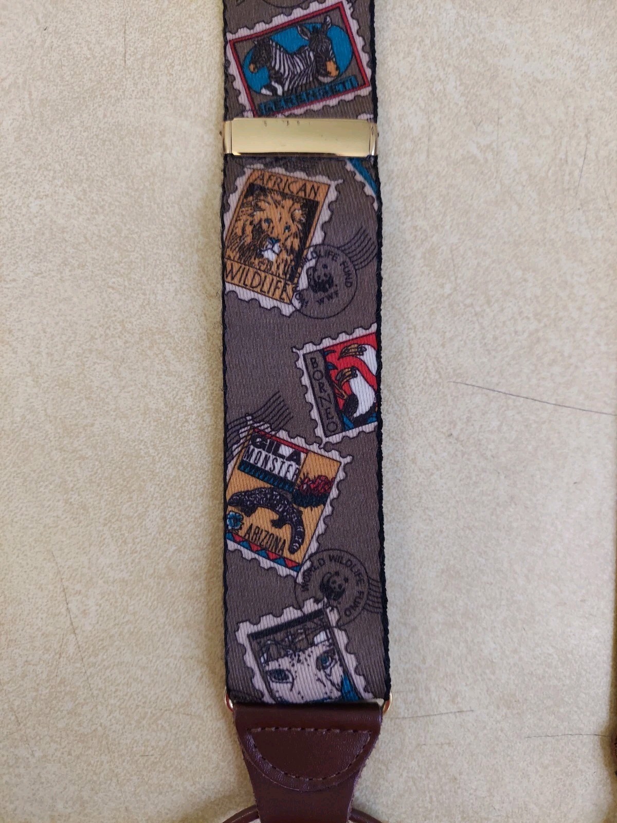 Vintage World Wildlife Fund Suspenders Animal Stamp Print Braces Leather 1991