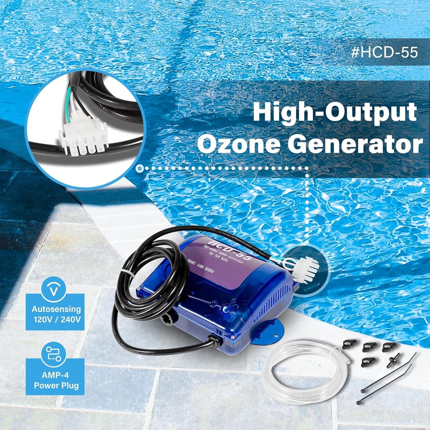 HCD-55 Spa Ozonator Kit - Hi-Output Hot Tub Ozone Generator 120V/240V AMP-4 Plug