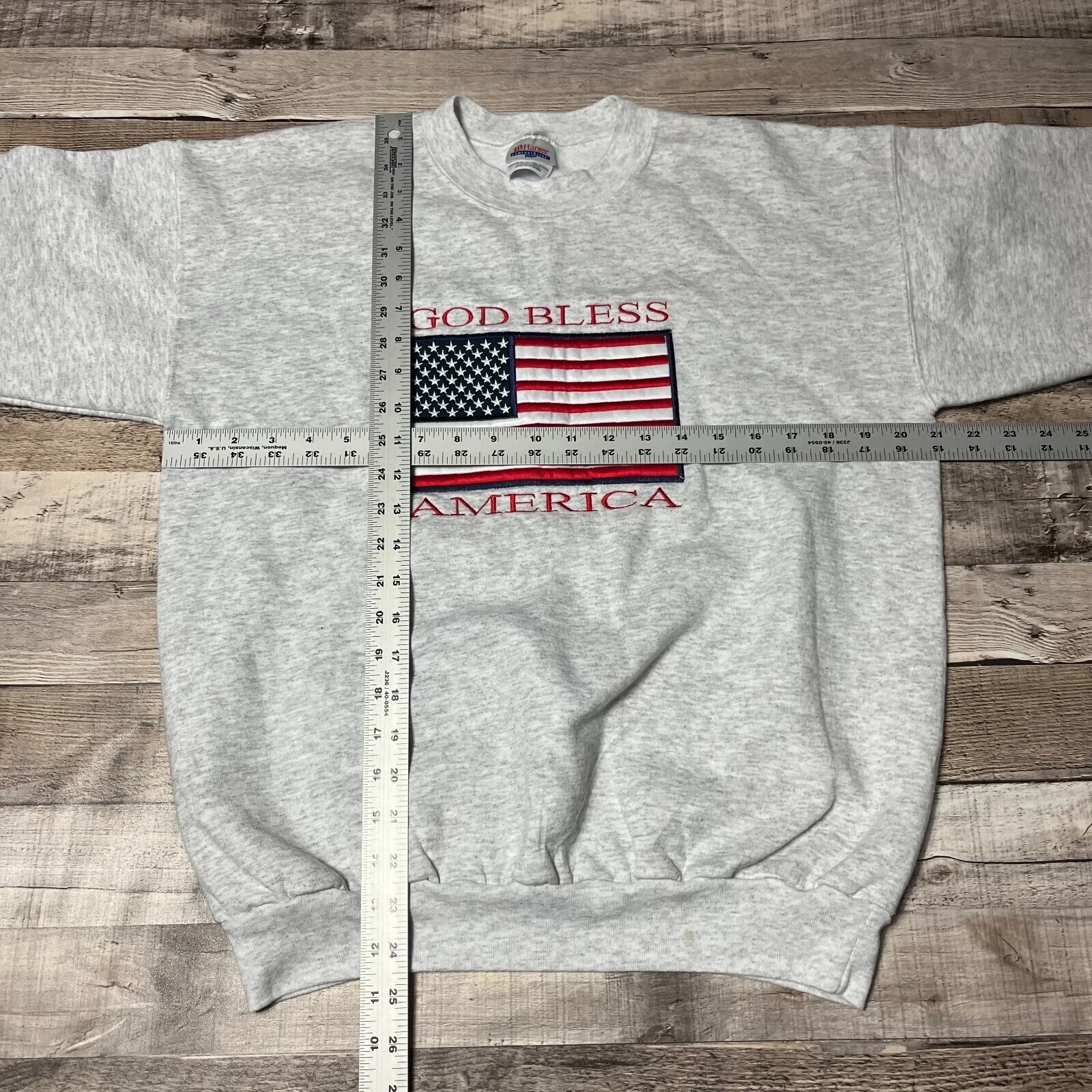 как выглядит USA Flag Sweatshirt Adult Medium Gray Vintage Embroidered God Bless America Vote фото