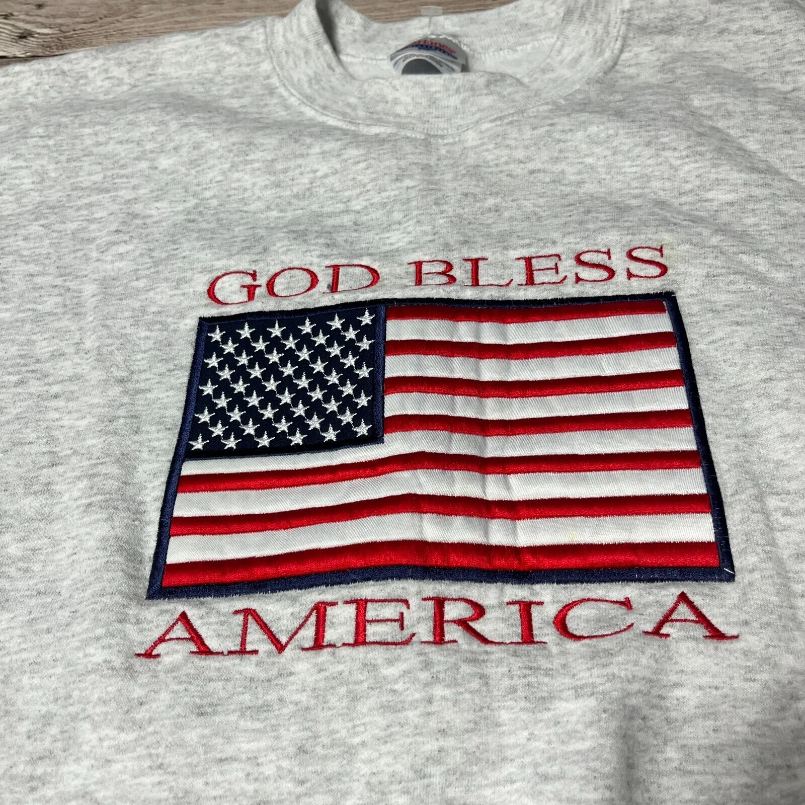 USA Flag Sweatshirt Adult Medium Gray Vintage Embroidered God Bless America Vote