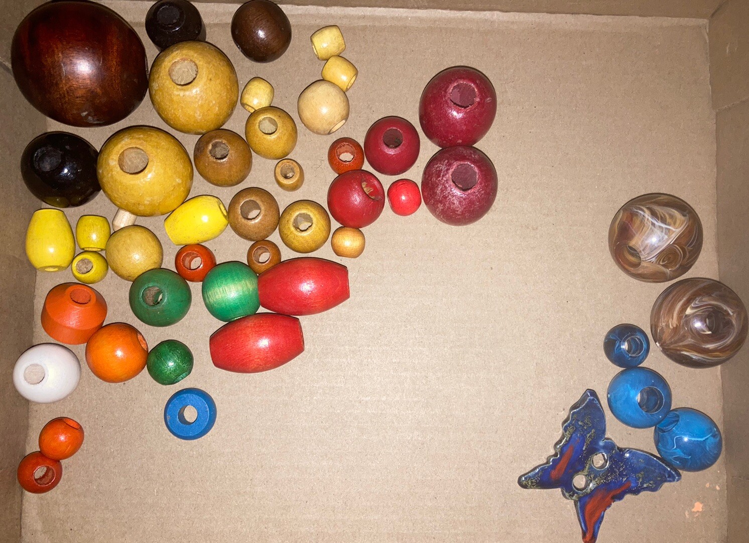Vintage Macrame Beads-wood, Resin, 1 ceramic Glazed Butterfly 49 Total Lot