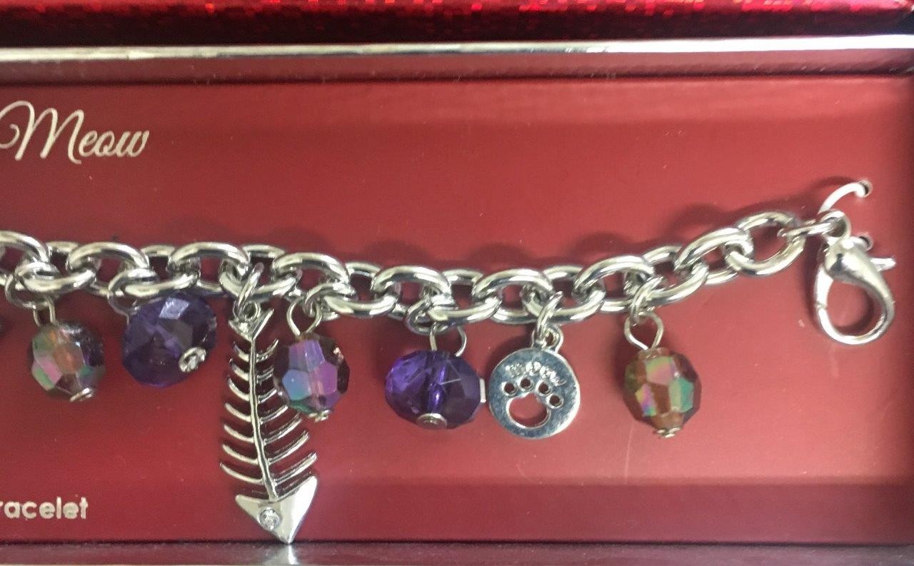 как выглядит The Cats Meow Charm Bracelet Rhinestones Colored Beads Cat Mouse Fish фото