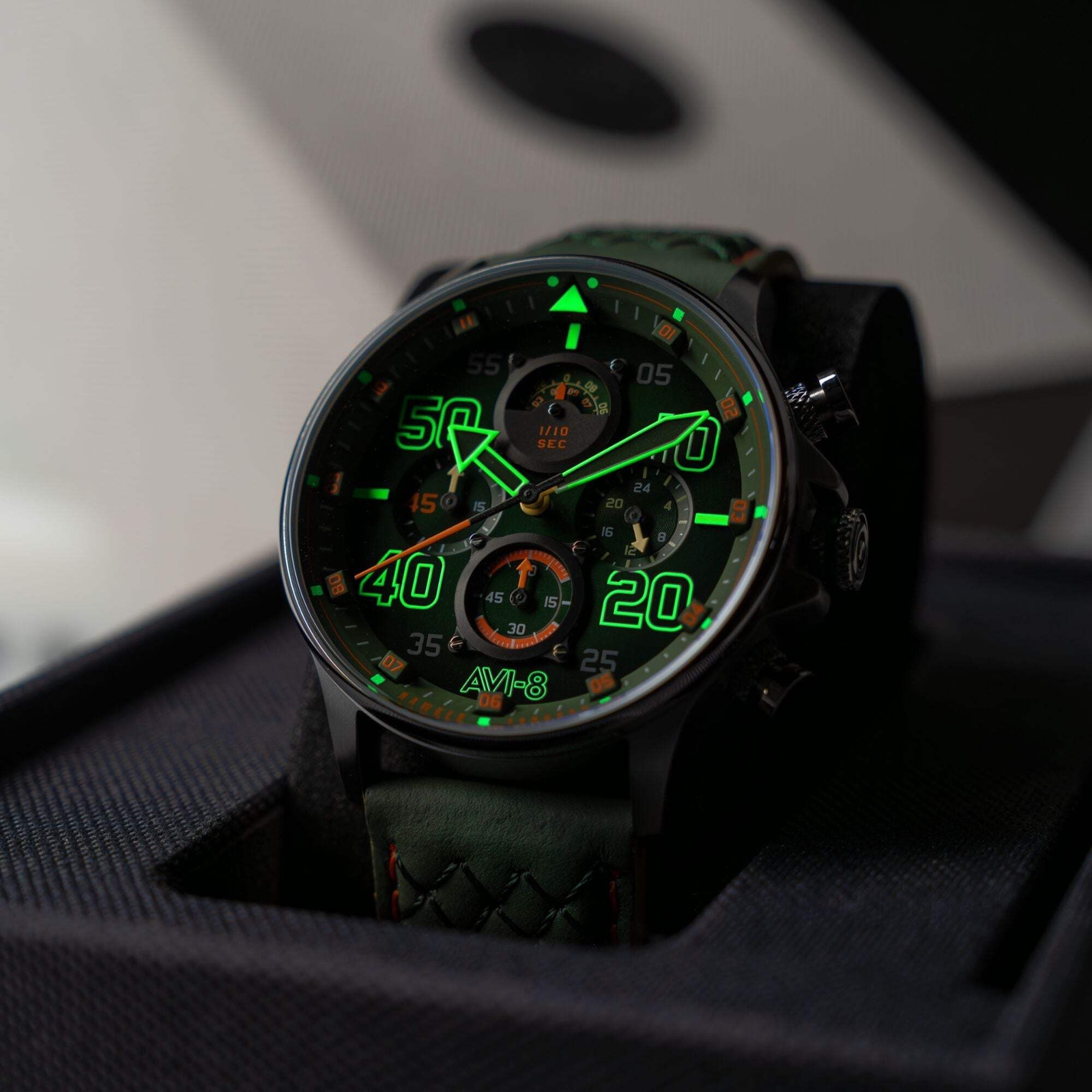 Coningham Chronograph Green / Leather Green Dial Wristwatch AV-4093-0D