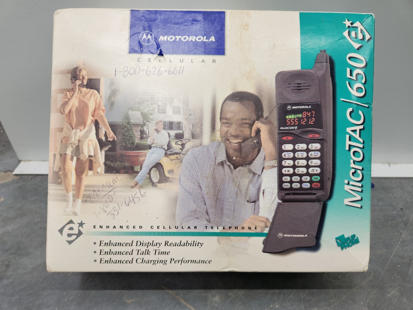 Vintage 1997 Motorola MicroTAC 650e Cellular Flip Phone Open Box Very Nice