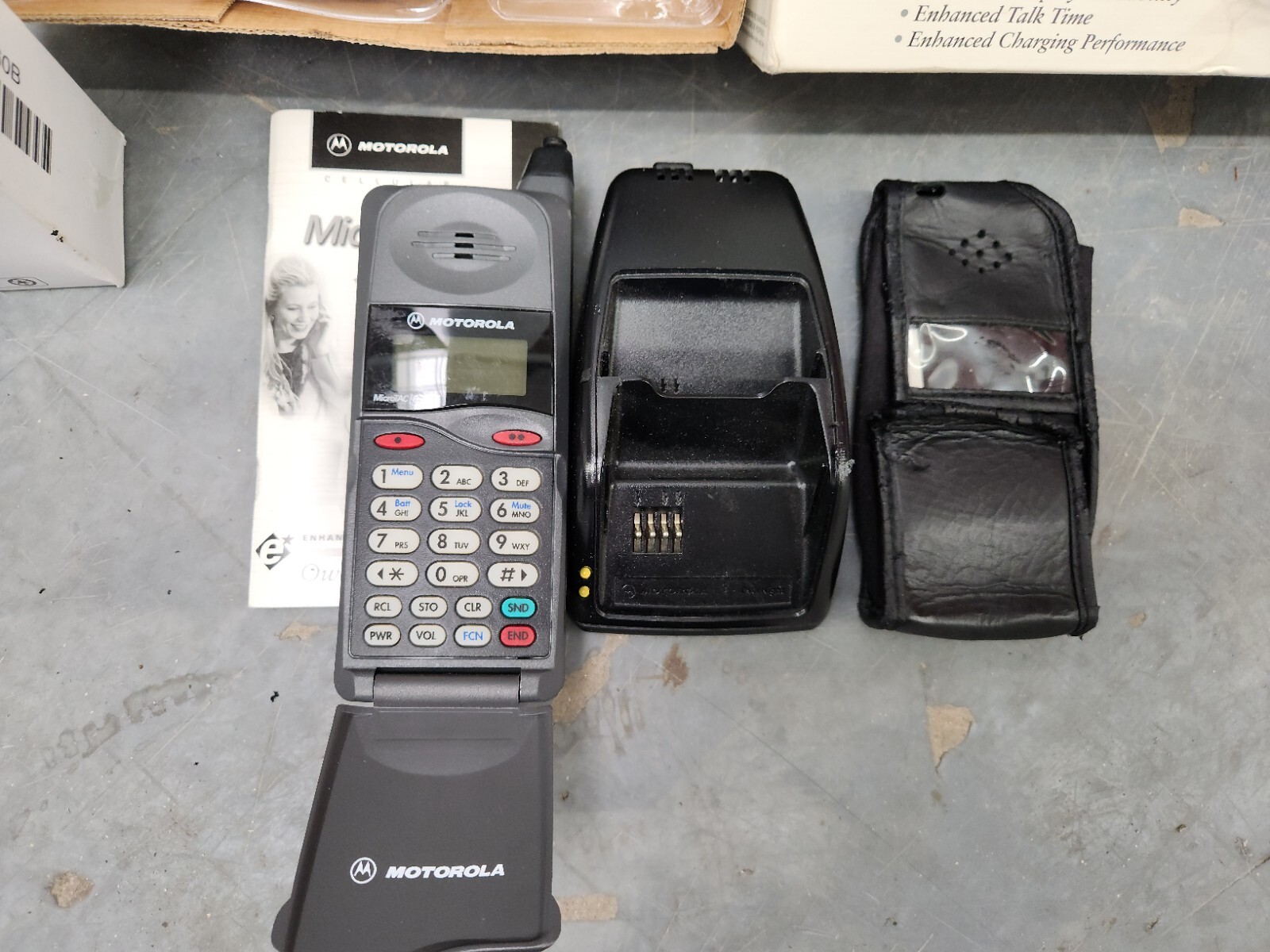 как выглядит Vintage 1997 Motorola MicroTAC 650e Cellular Flip Phone Open Box Very Nice фото