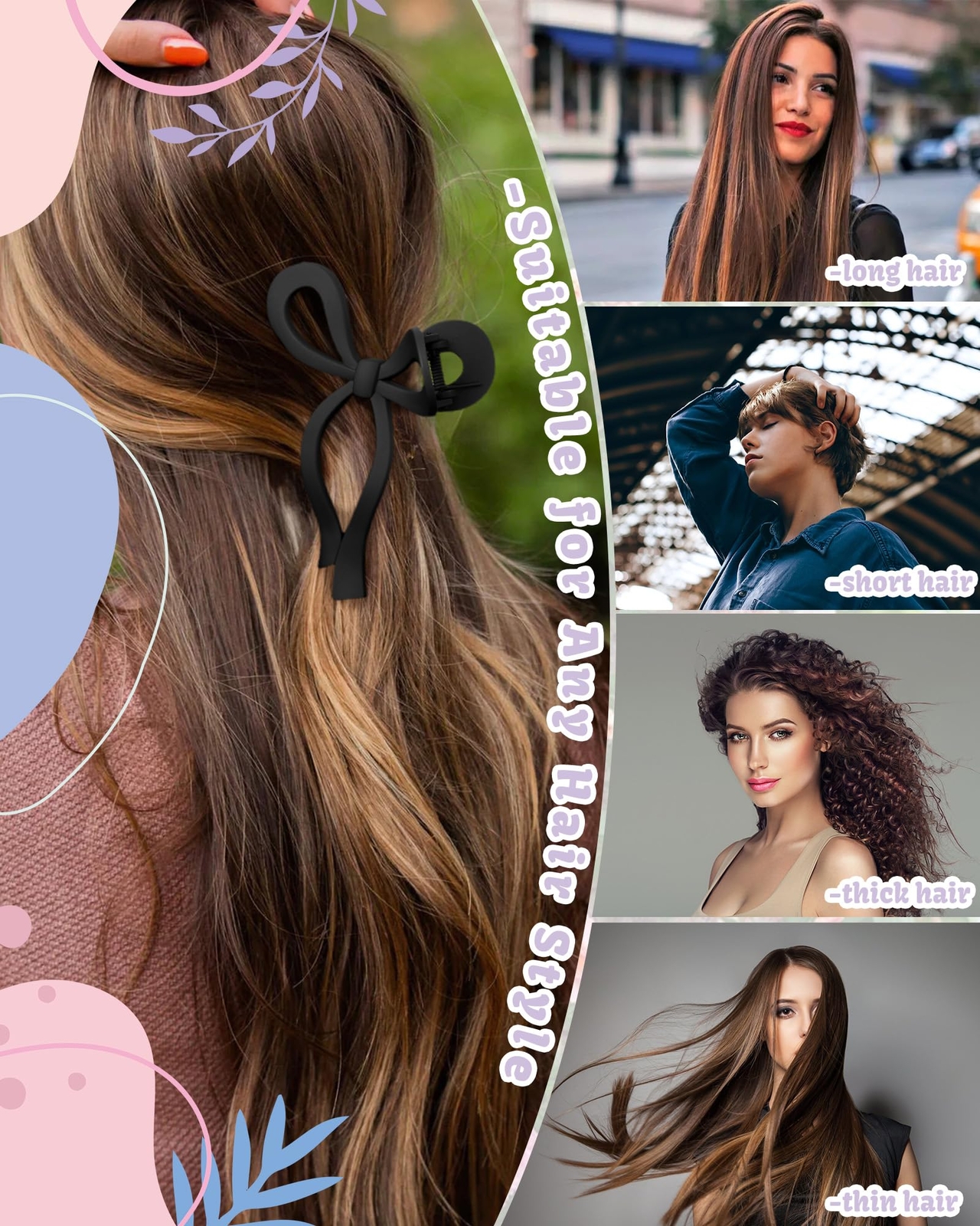 4 PCS Bow Hair Clips Bow Claw Clip for Women Nonslip Large Hair Claw Clips fo...
