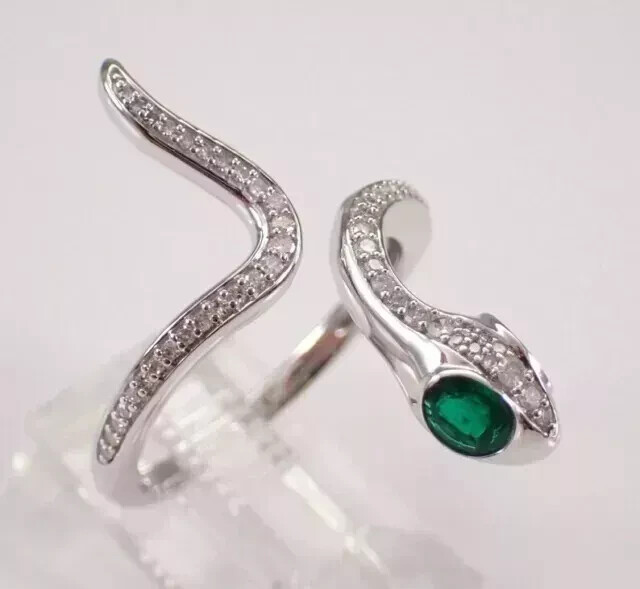 как выглядит 1.20Ct Oval Lab Created Emerald Women Snake Ring 14k White Gold Plated фото