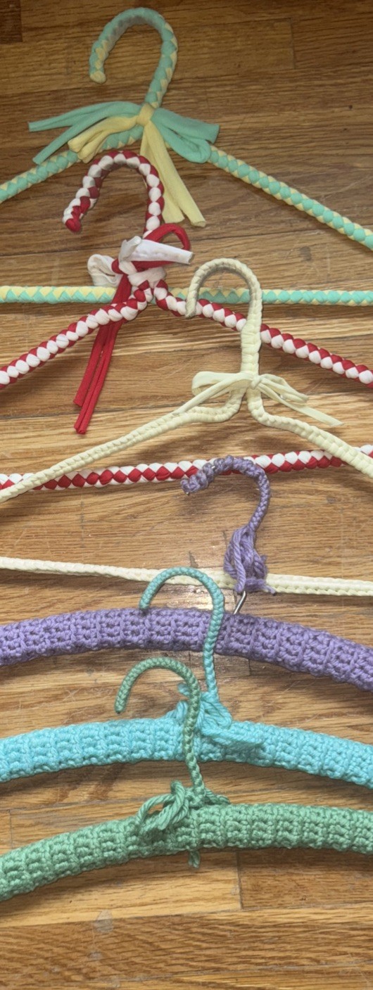 Lot Of 6 Vintage Crocheted Metal Clothes Hangers Granny Core Cottage Pastel