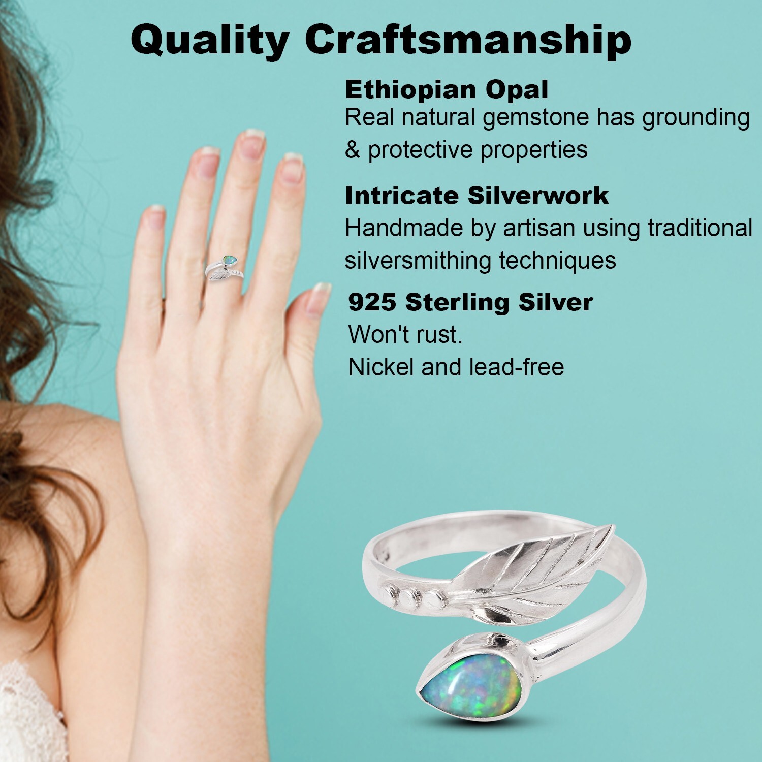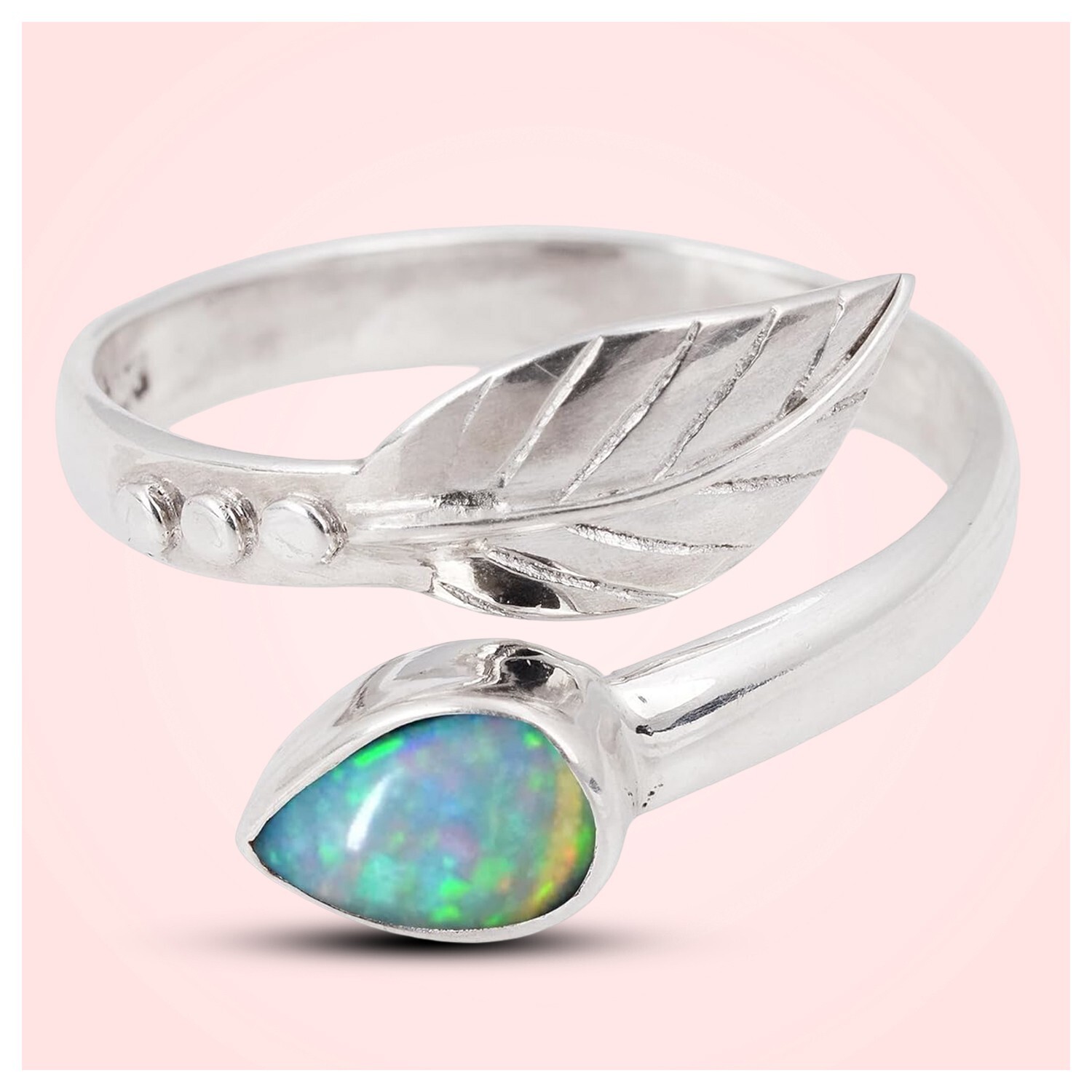 Leaf Ring Adjustable 925 Sterling Silver Handmade Boho Ring Pear Shape Jewelry