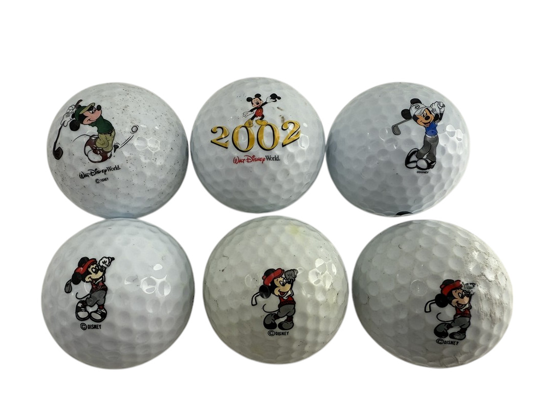 6 Vintage Disney Golfer Mickey Mouse Theme Park Exclusive Golf Balls Mix Set Lot