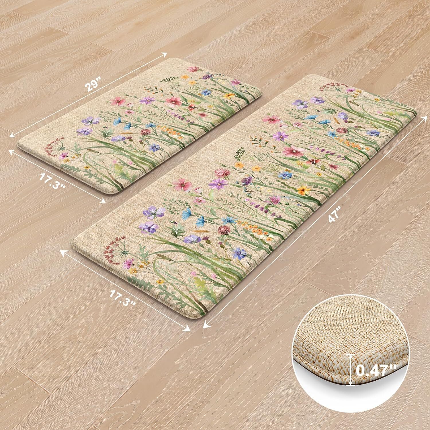 Anti Fatigue Kitchen Mat,17x47 17x29Floral Kitchen Rugs Sets of 2,Floor Mats