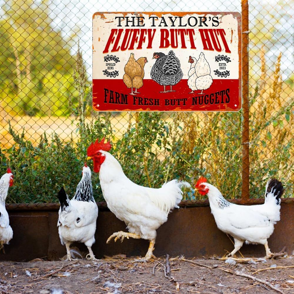 Tin Metal Sign Fluffy Butt Hut Spoiled Chicken Funny Coop