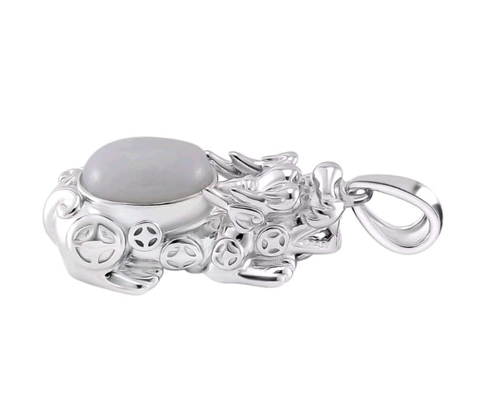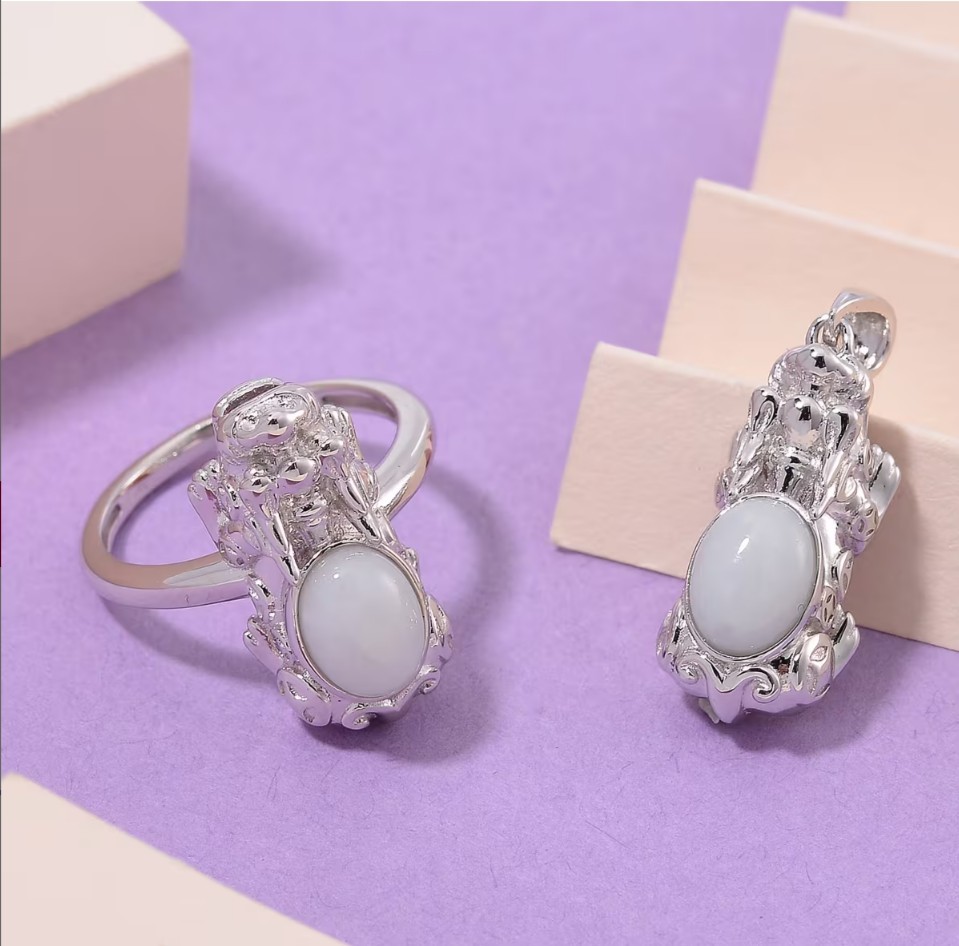 как выглядит Natural Jade 3.30ctw Pixiu Ring and Pendant in Rhodium Over Sterling Silver Sz 7 фото