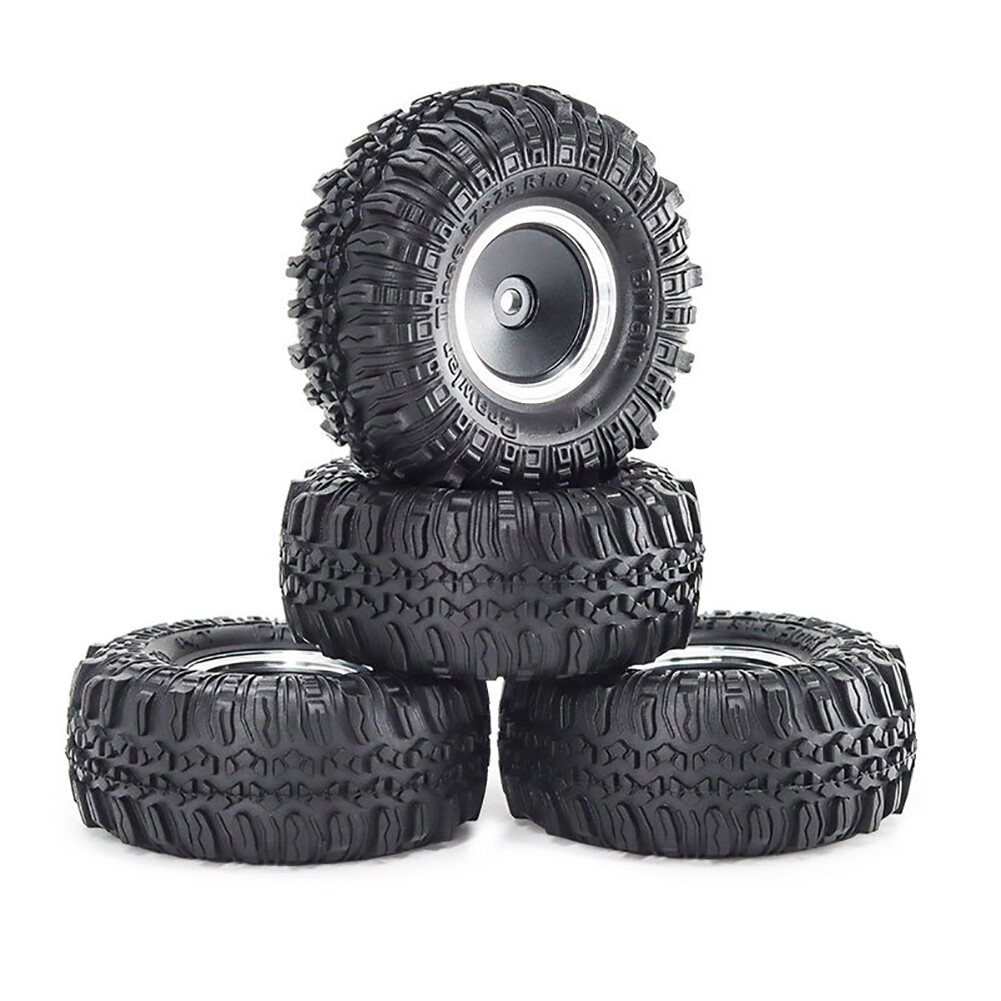 4Pcs 1.0 inch Aluminum Wheel Rims Tires For 1/18 1/24 RC Crawler Car TRX4M SCX24