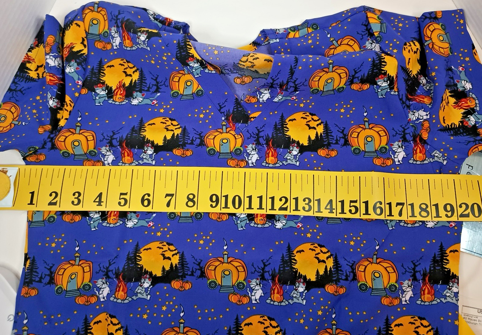 как выглядит Purple Halloween Cats Bats Campfire GT Scrub Top Small New фото