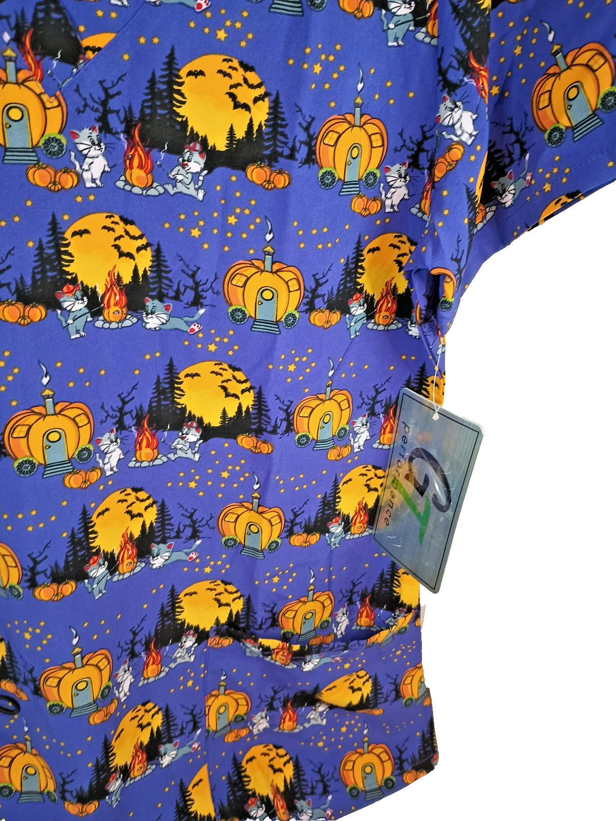 Purple Halloween Cats Bats Campfire GT Scrub Top Small New