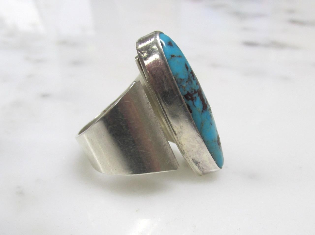 Unisex Navajo Sterling Silver Turquoise Ring Size 8 12.4grams 10-G748