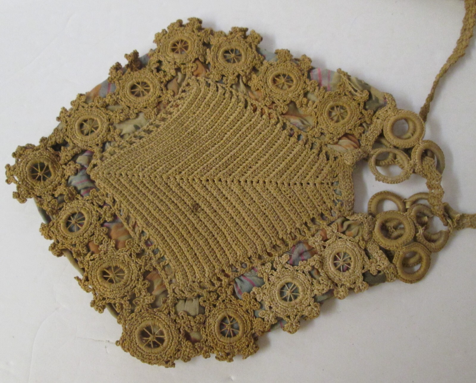 Victorian Edwardian era crochet lined purse evening bag cross body