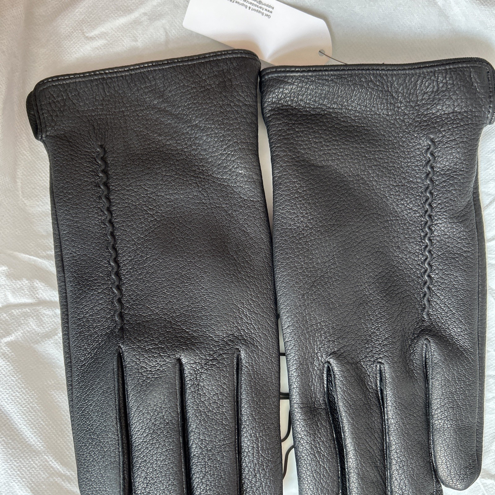 как выглядит Vintage Bechamel Black Leather Womans Gloves Size XL Silk Lined фото