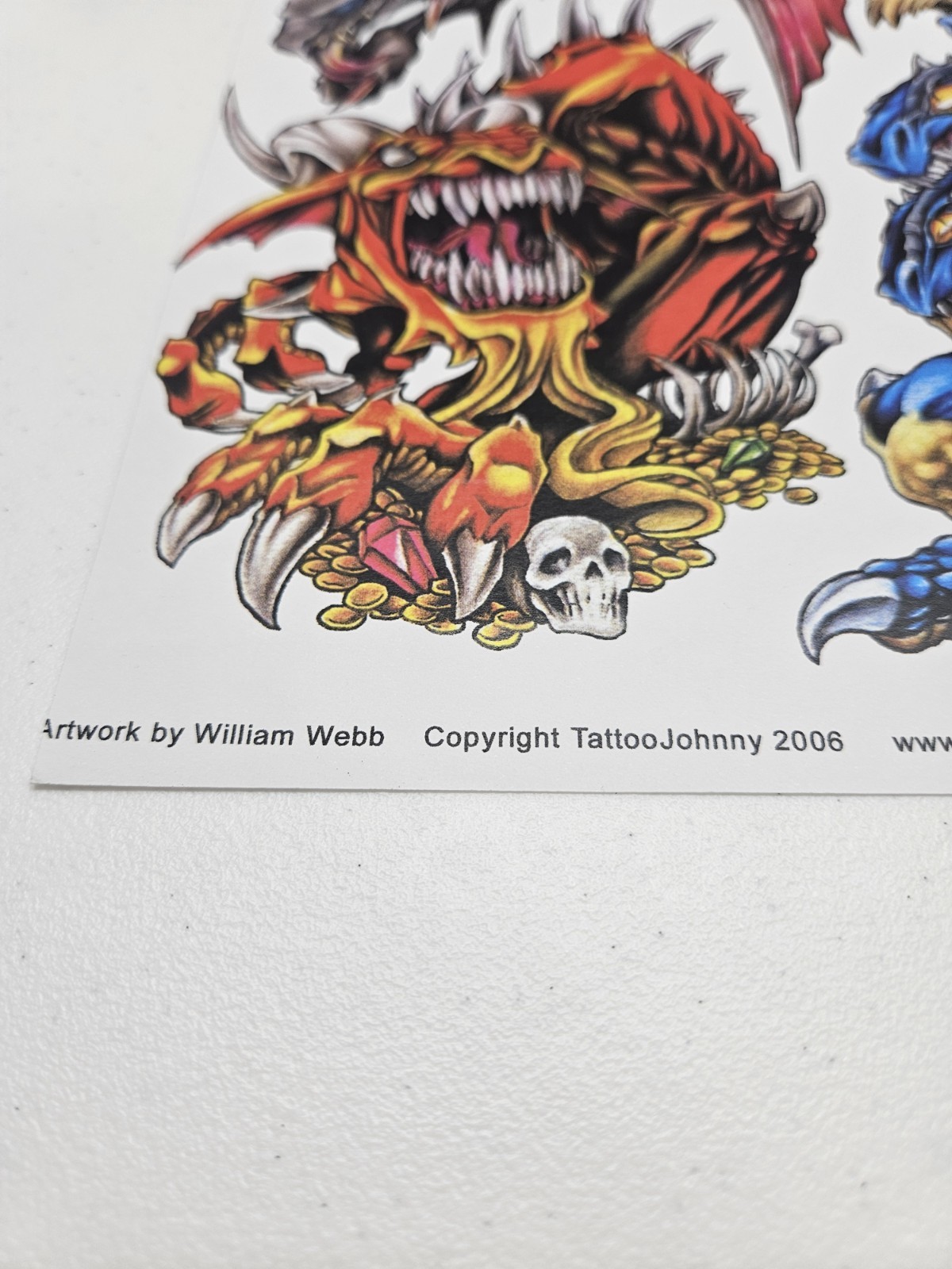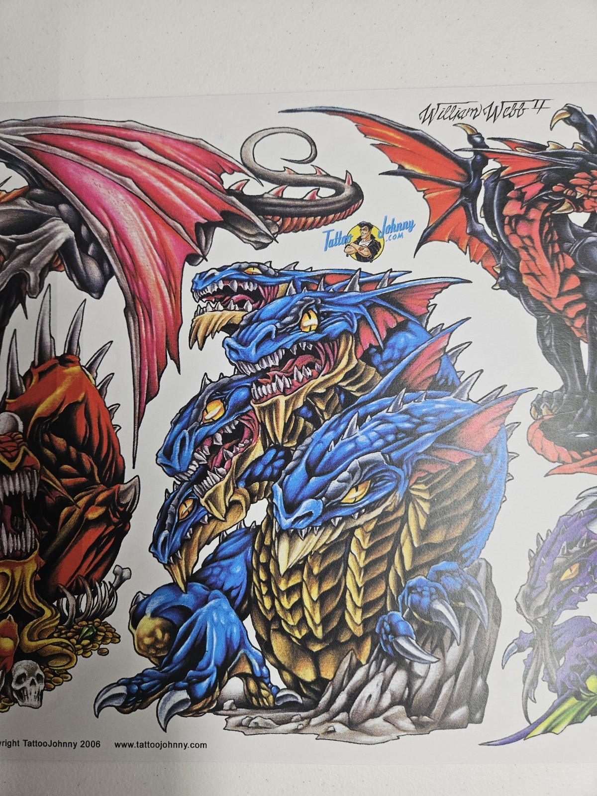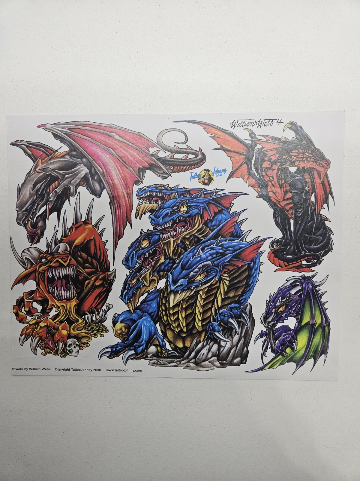 Vintage Tattoo Flash Art Work By William Webb Colored Dragons 14x11