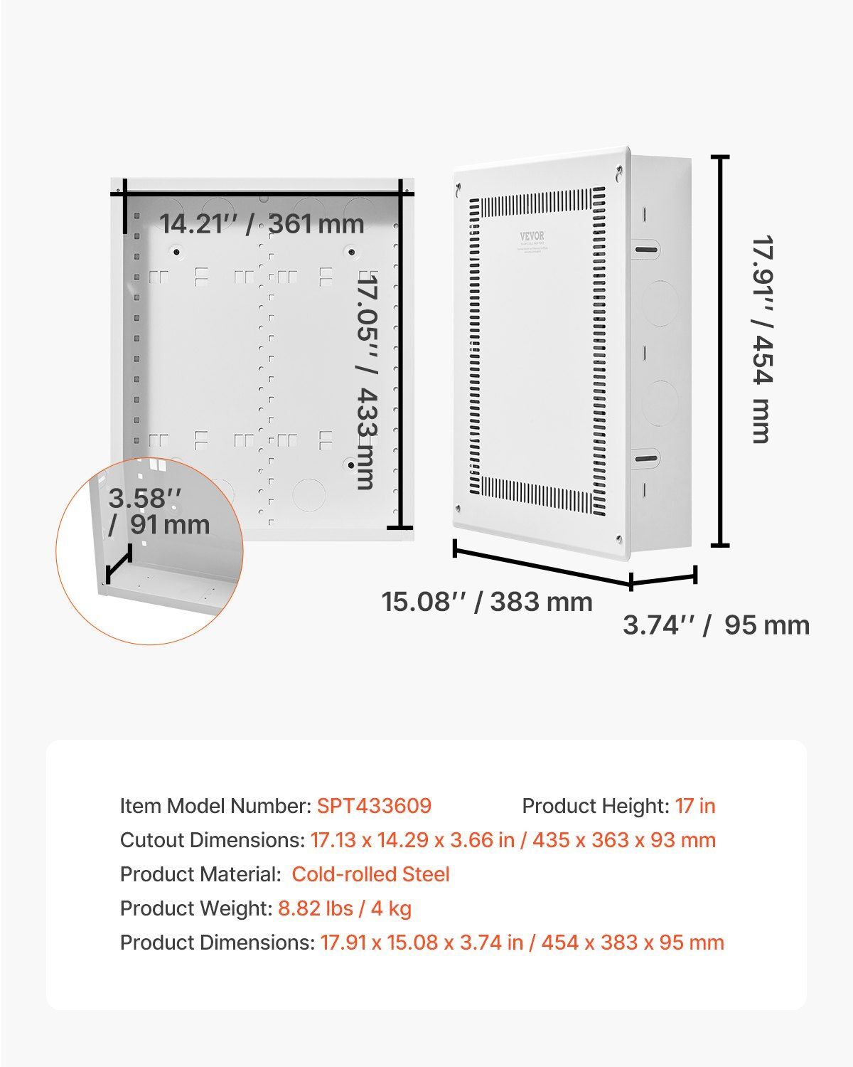 Structured Media Enclosure 17 in Recessed in-Wall TV Media Box with Cover