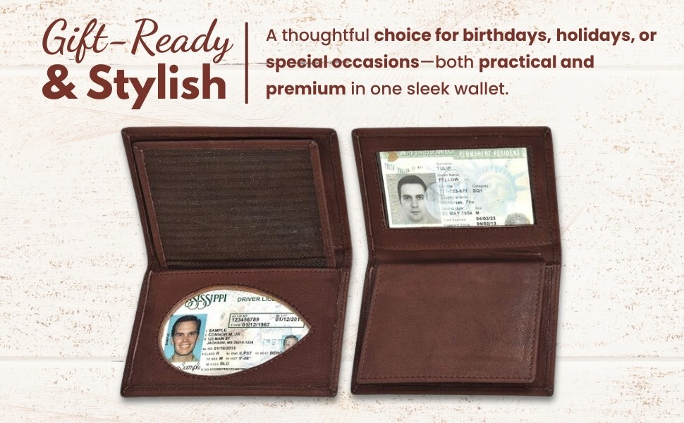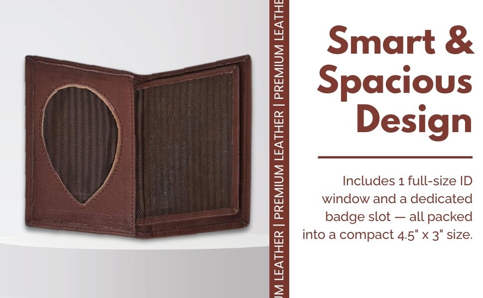 Dark Brown leather police badge wallet bifold id holder with shield slot