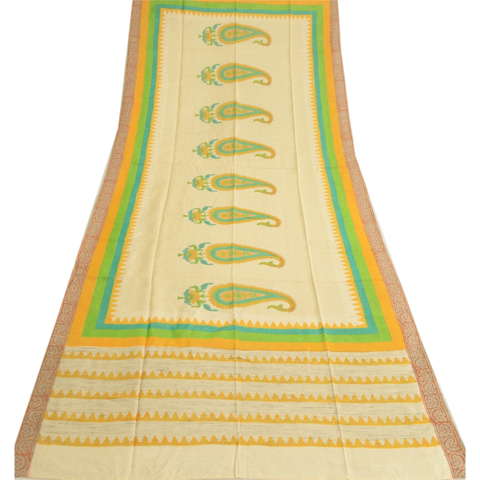 Sanskriti Vintage Long Dupatta Stole Pure Silk Ivory Hand-Block Printed Scarves