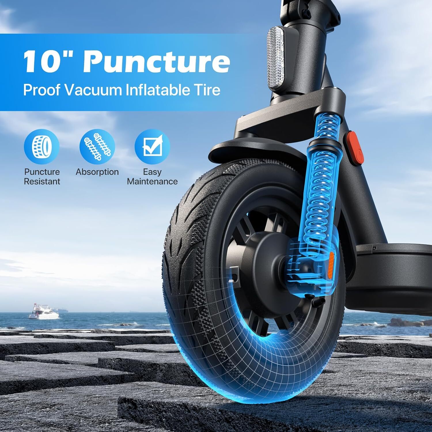 Wheels: 10 inch Pneumatic tires