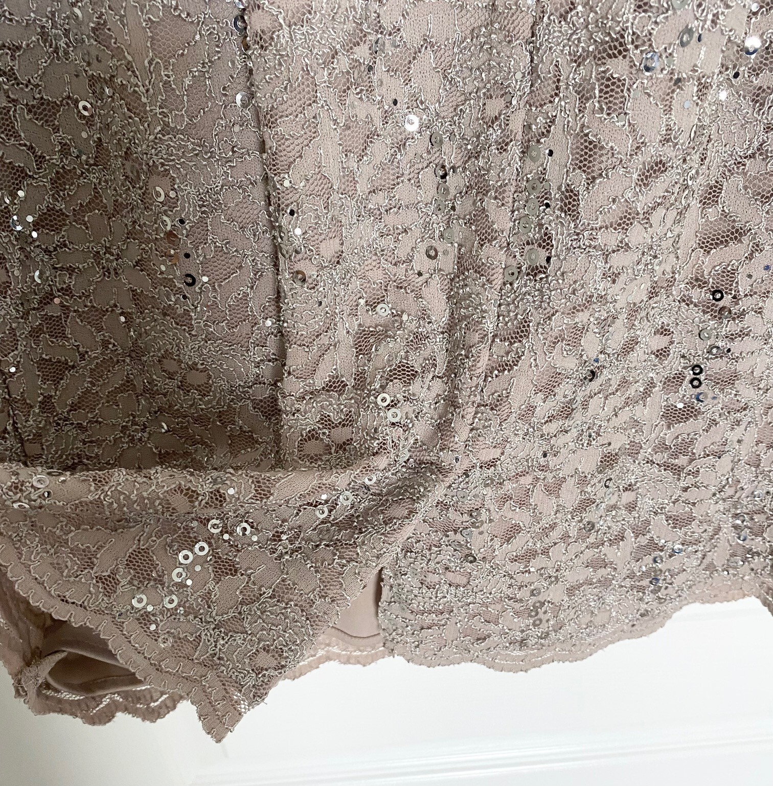 как выглядит ALEX EVENINGS 2pc Champagne Silver Sequin Lace Cocktail Dress Jacket SET 10 US фото