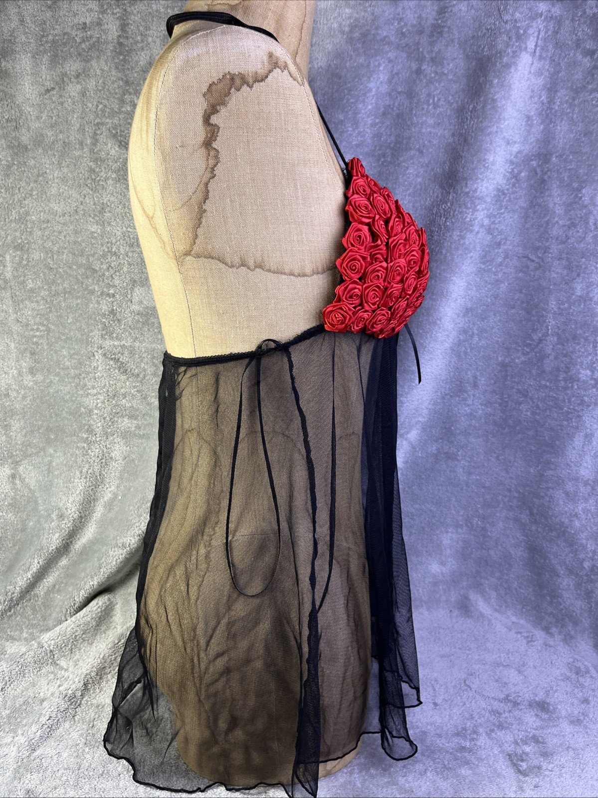 NWT Frederick's of Hollywood Rose Garden Red Black Teddy Lingerie G String Med