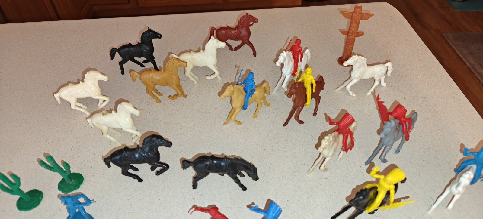 Lot of 55 Vintage MPC MARX Cowboys, Indians, Horses Plastic Figures
