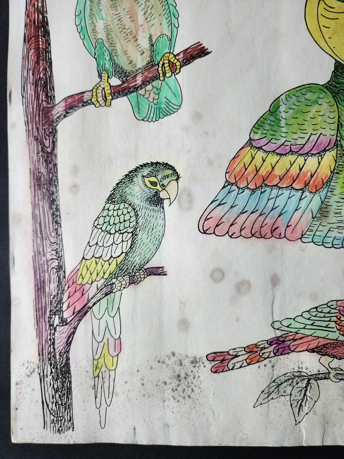 как выглядит Unknown Artist ORIGINAL Vintage Shop Used Tattoo Flash Sheet Hand Colored Birds фото