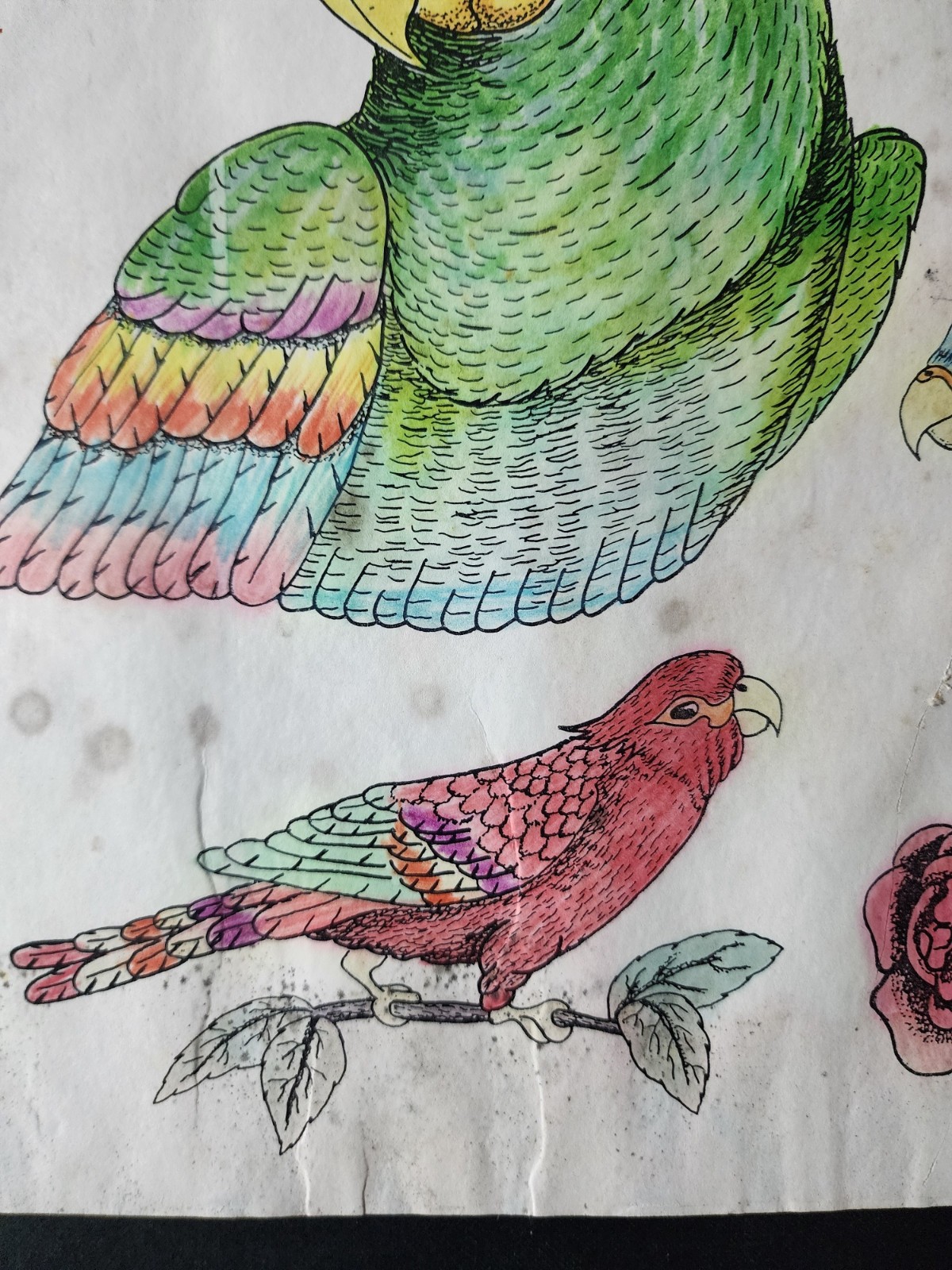 Unknown Artist ORIGINAL Vintage Shop Used Tattoo Flash Sheet Hand Colored Birds