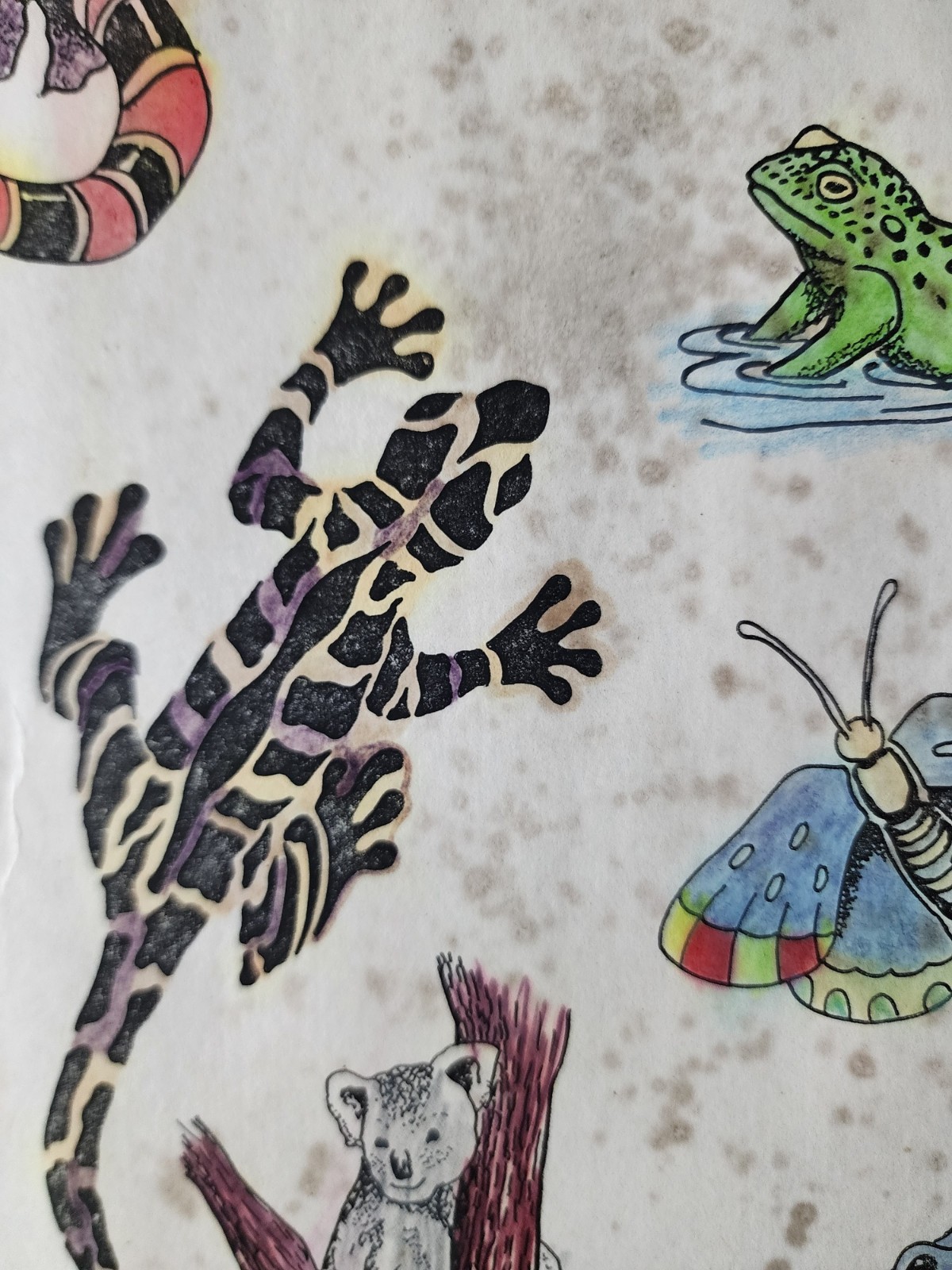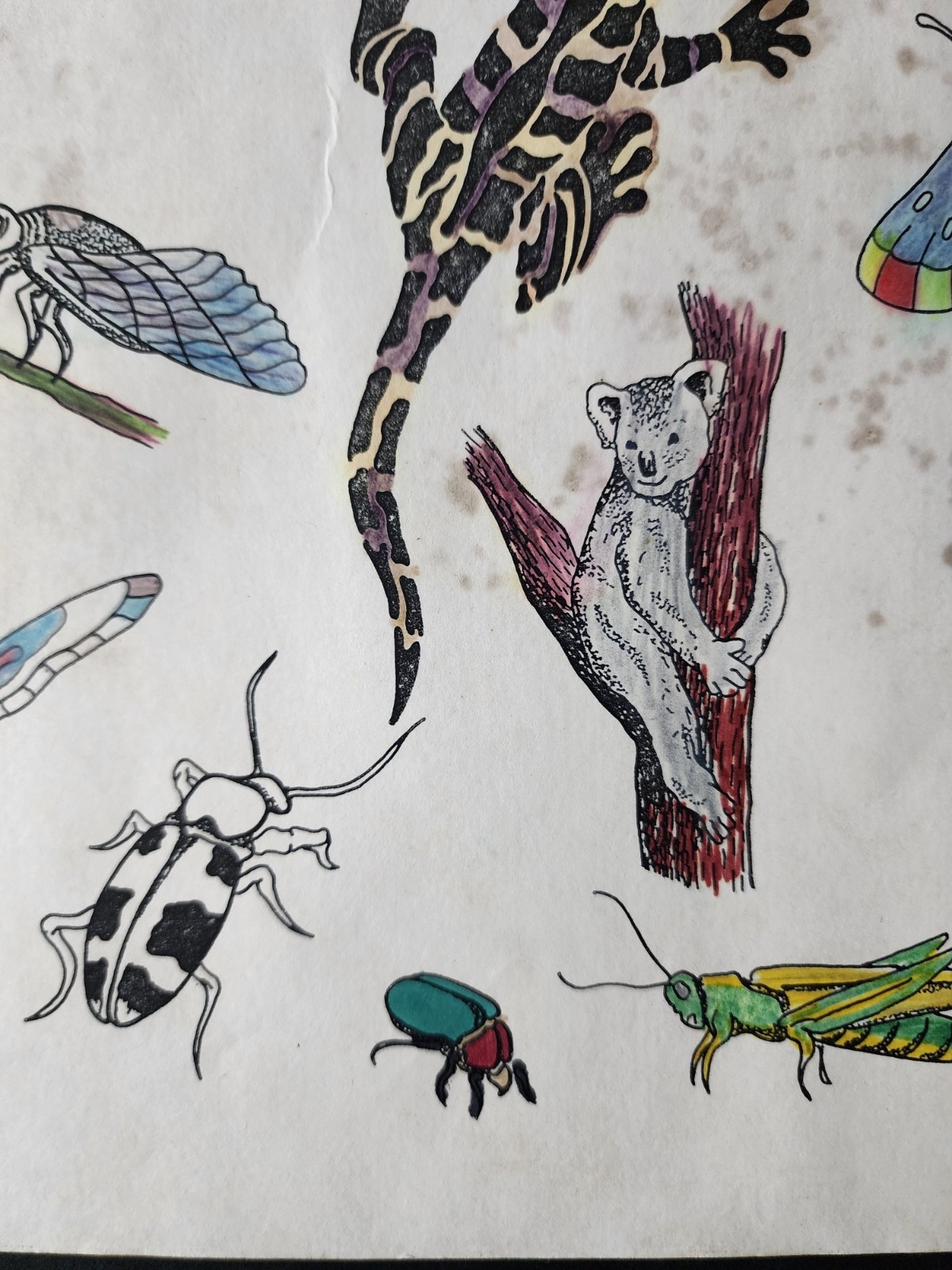 Unknown Artist ORIGINAL Vintage Shop Used Tattoo Flash Sheet Hand Colored 2