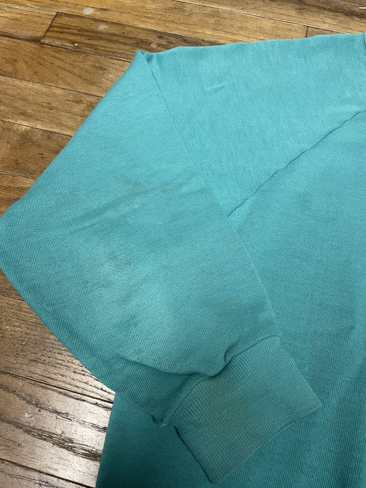 как выглядит Vintage 80s Blank Crewneck Distressed Size Medium Teal Color 42 фото