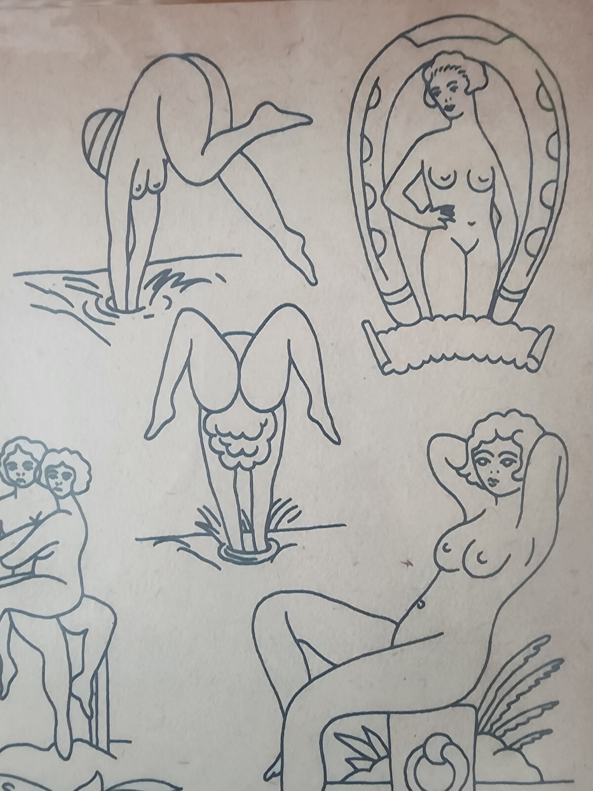 Percy Waters Traditional Vintage Tattoo Flash Production Sheet Girls, Swimming