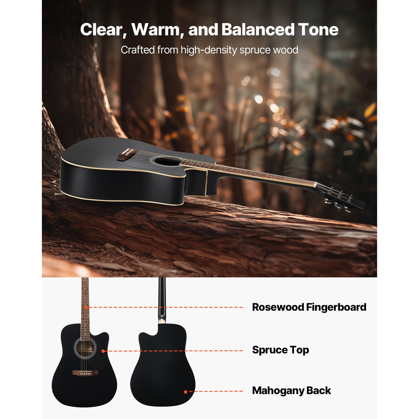 Uimoso 41-Inch Acoustic Guitar Starter Kit with Bag for Adults, Black Finish
