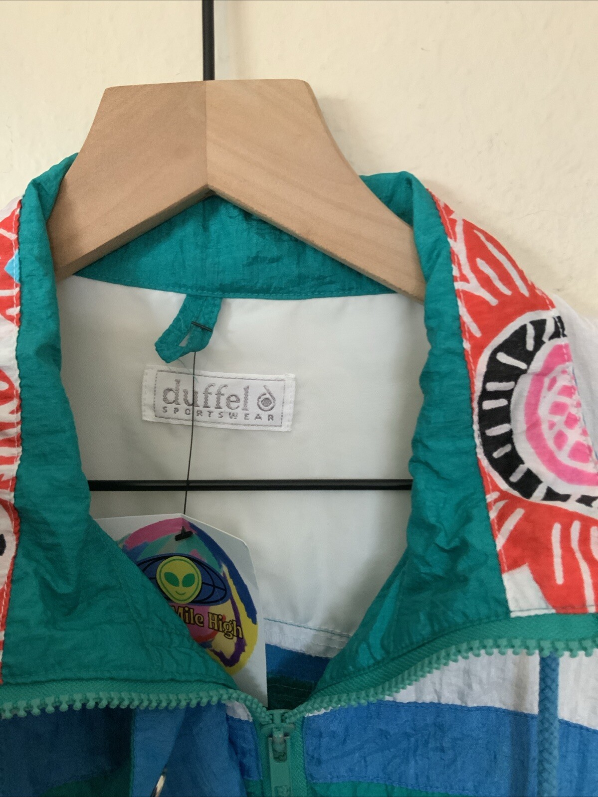 Vintage 90's Duffel Sportswear White Turquoise Small