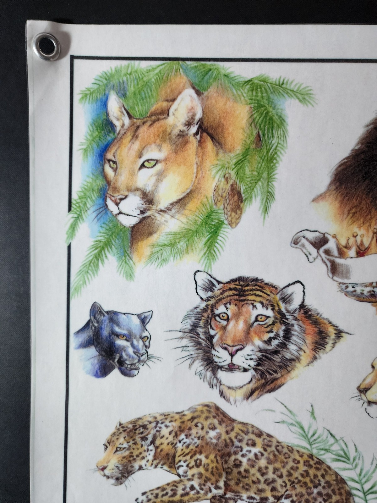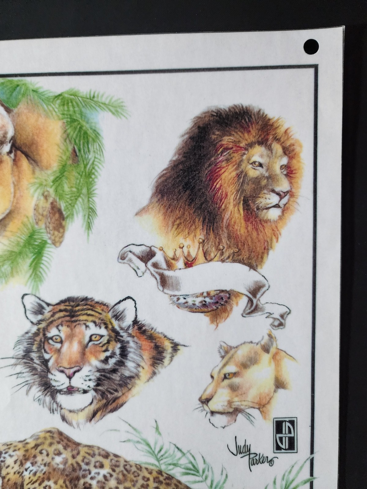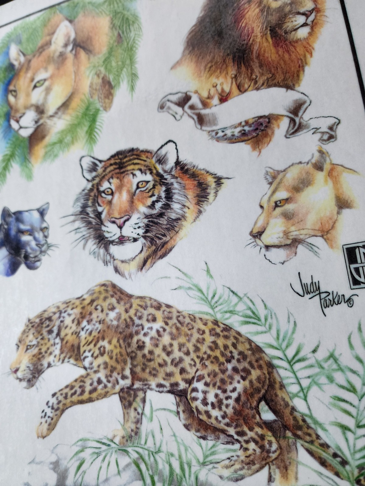 Original VINTAGE Traditional SHOP USED Judy Parker Tattoo Flash Sheet Lion, Cats